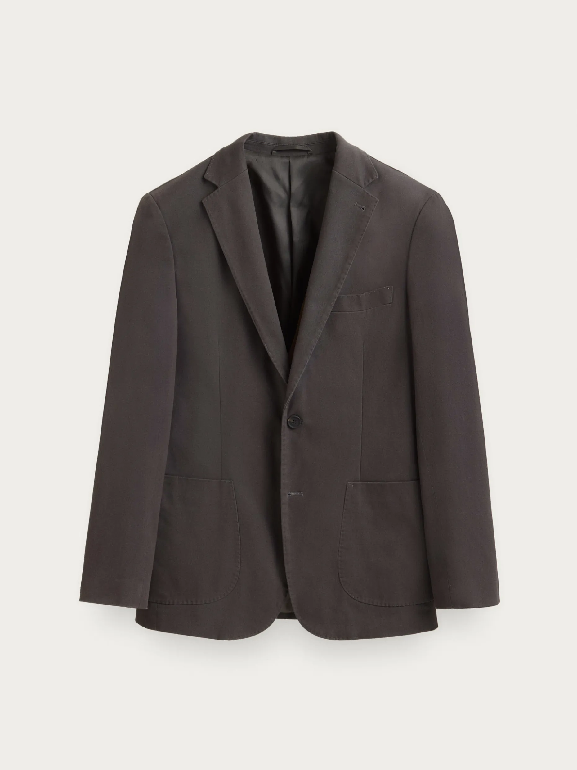 Americana confeccionada en tejido de algodón de corte slim fit. Cuenta con cuello y solapa, cierre central simple mediante dos botones y puños con botones decorativos. Pinzas en el frontal, dos bolsillos de parche en la cintura y un bolsillo a la altura del pecho. Dos bolsillos en su interior.