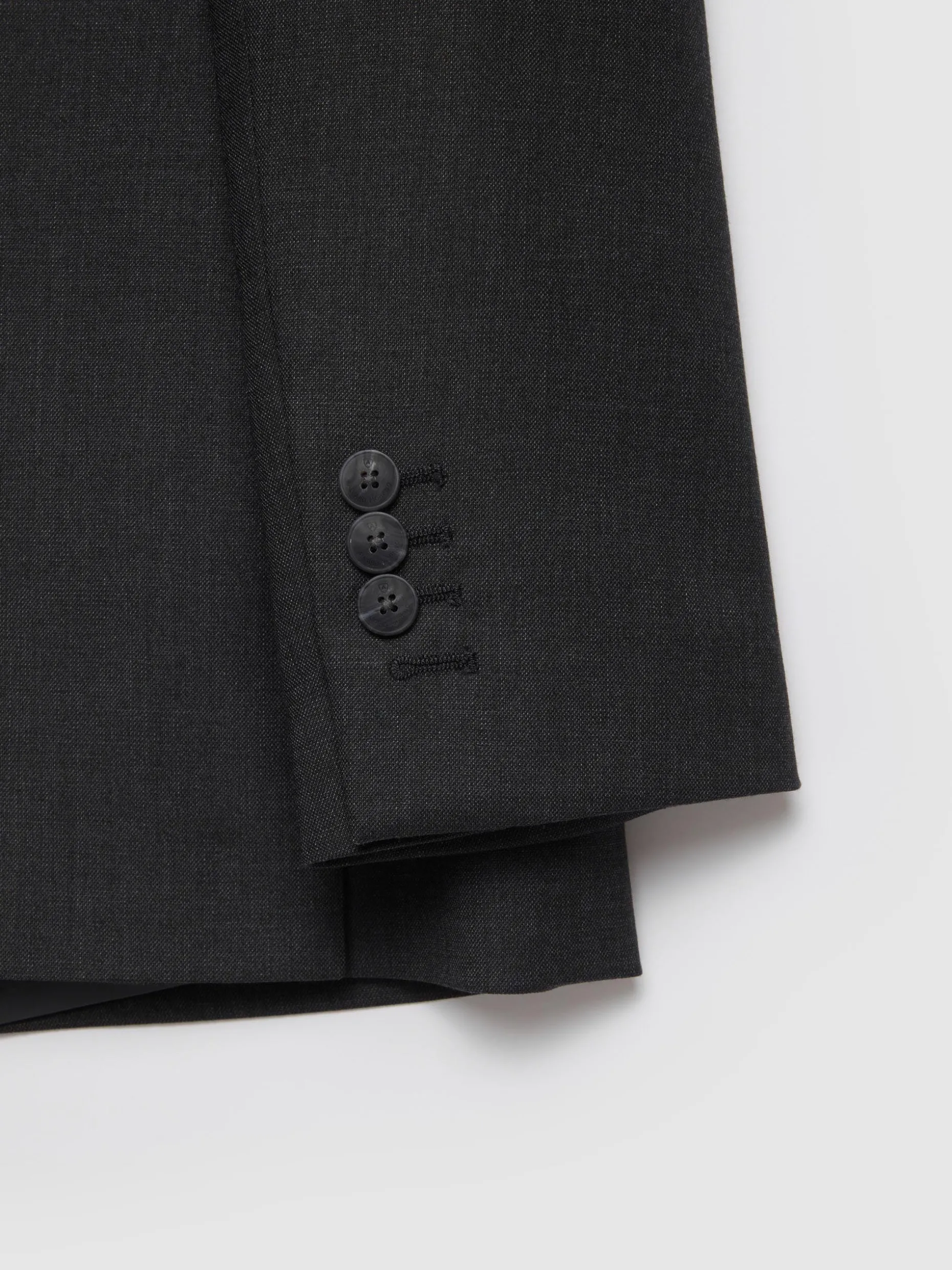 Americana con tejido fi fil de cierre central cruzado y con cuello y solapa. Bolsillo de ojal en el pecho, tres bolsillos de solapa en la cintura y puños con botones en su terminación. Pinzas en el delantero. Interior forrado y con bolsillos.