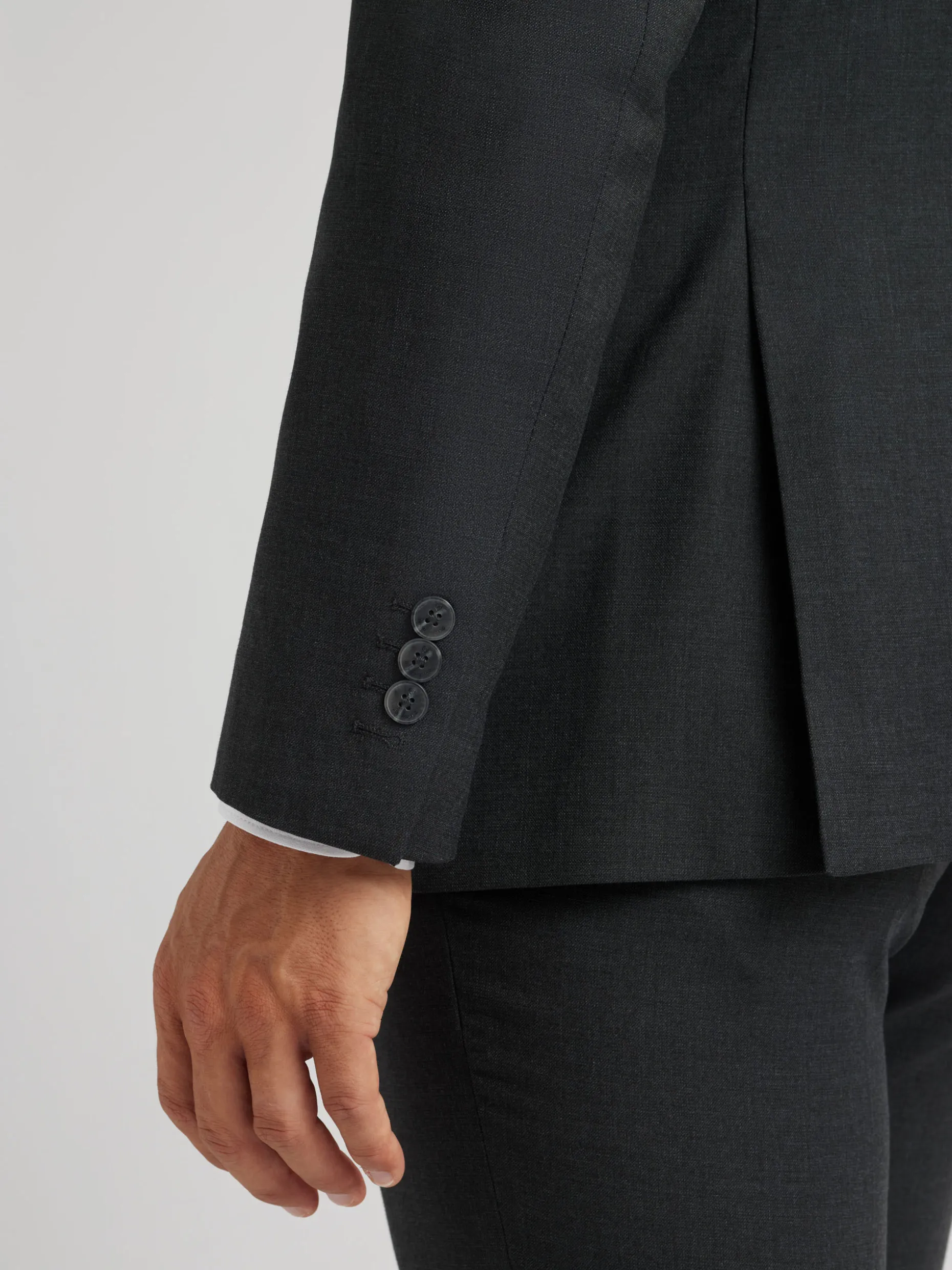 Americana con tejido fi fil de cierre central simple mediante botones y con cuello y solapa. Bolsillo de ojal en el pecho, tres bolsillos de solapa en la cintura y puños con botones en su terminación. Pinzas en el delantero. Interior forrado y con bolsillos.