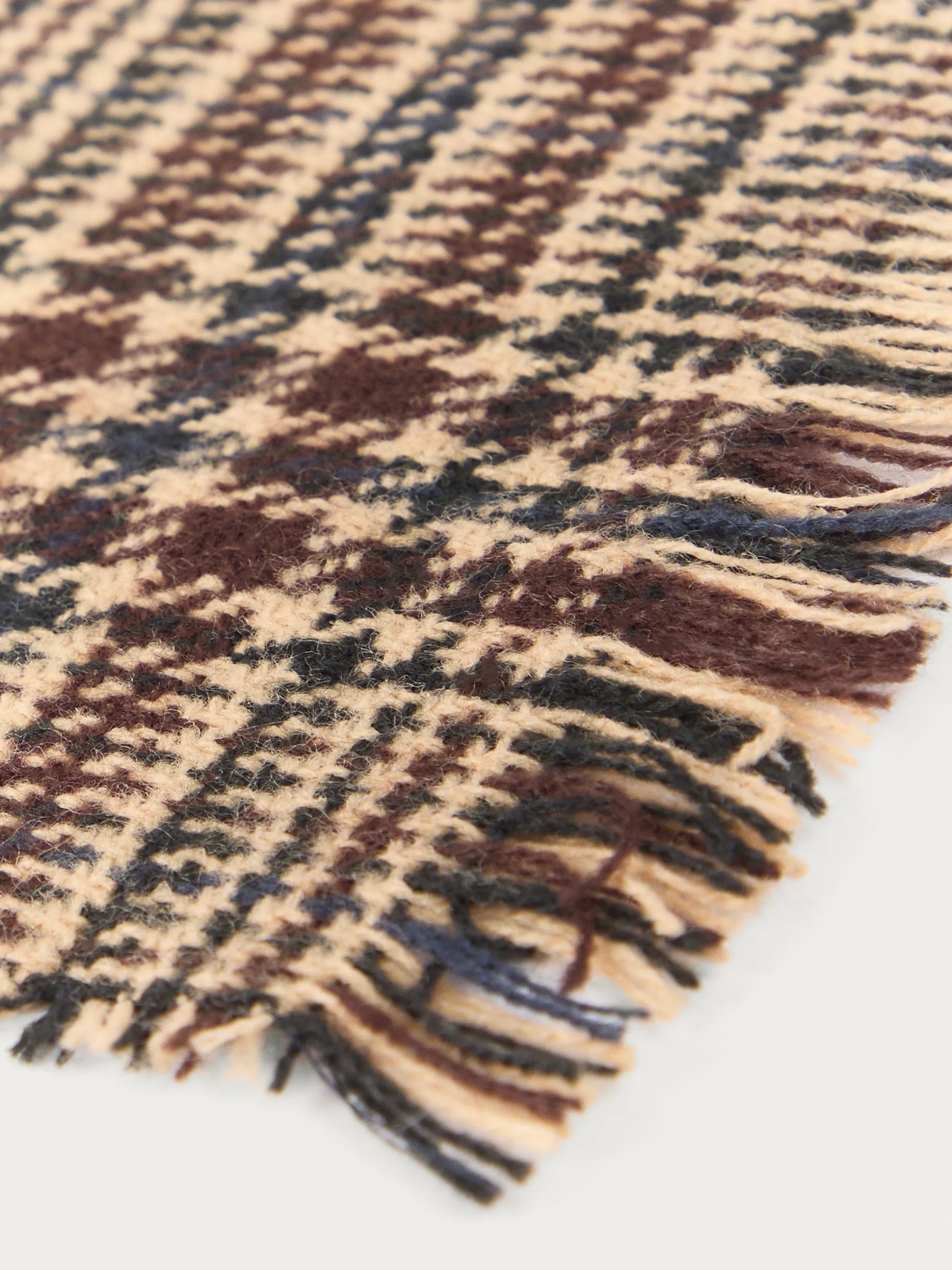 Bufandas con diseño de cuadros confeccionada en 100% acrílico. Terminación de flecos decorativos y tacto suave.
