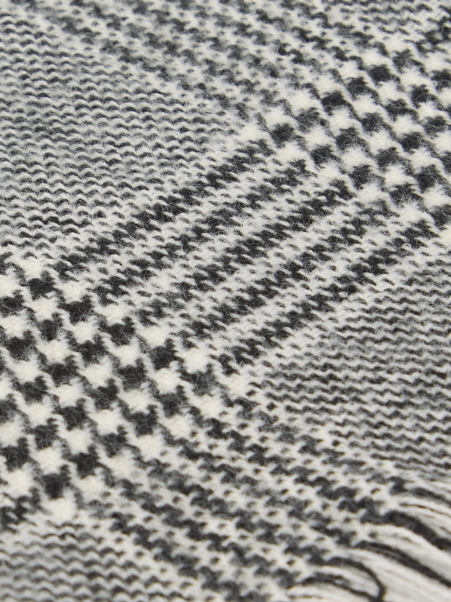 Bufandas con diseño de cuadros confeccionada en 100% acrílico. Terminación de flecos decorativos y tacto suave.
