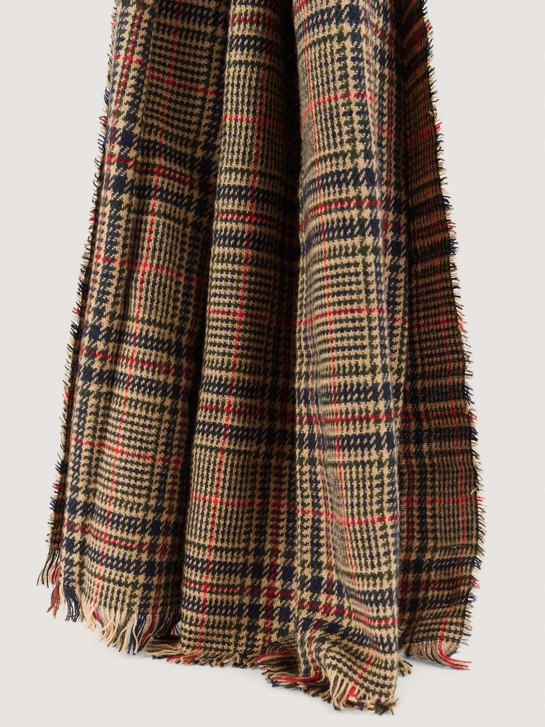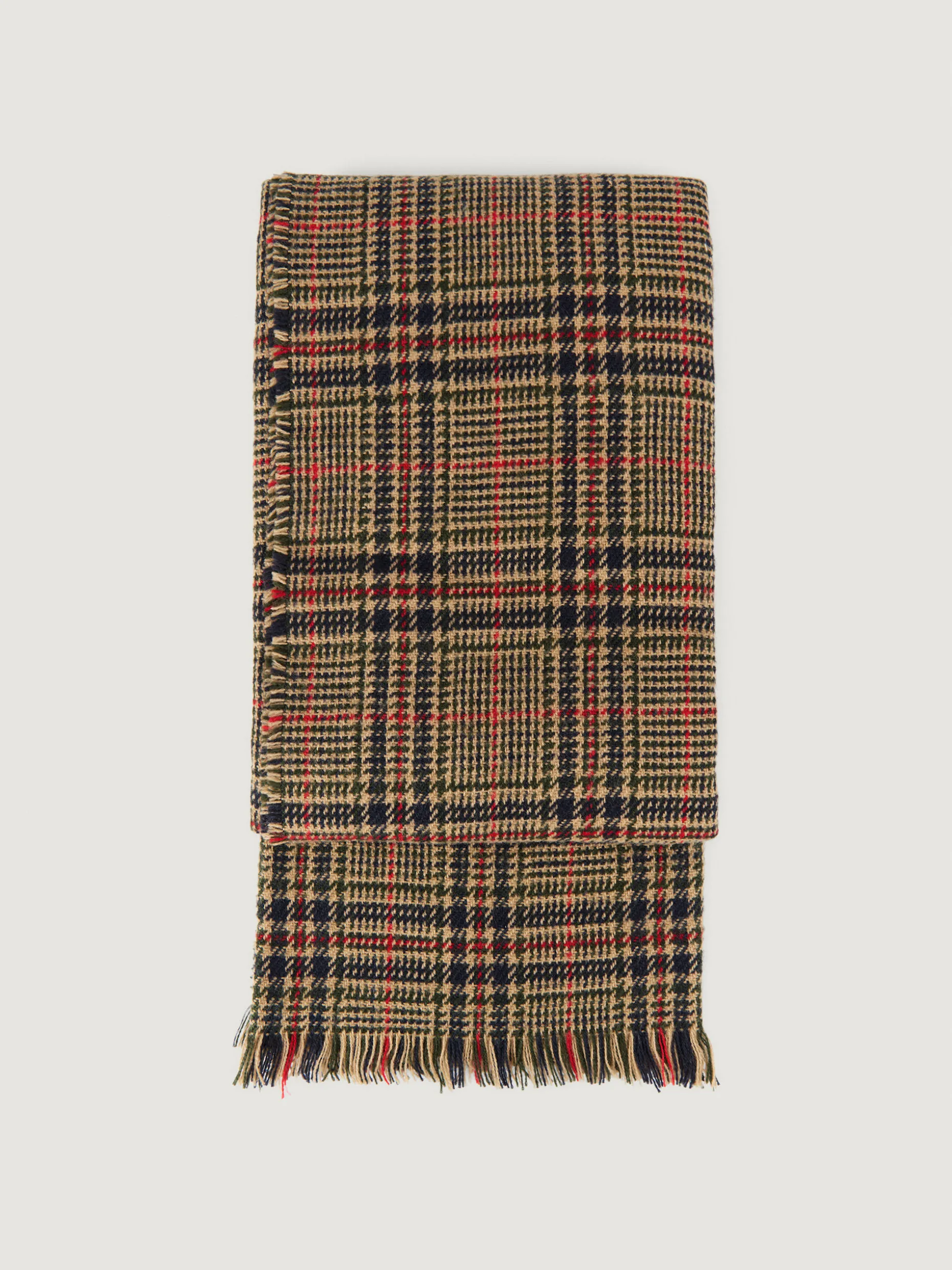 Bufandas con diseño de cuadros confeccionada en 100% acrílico. Terminación de flecos decorativos y tacto suave.