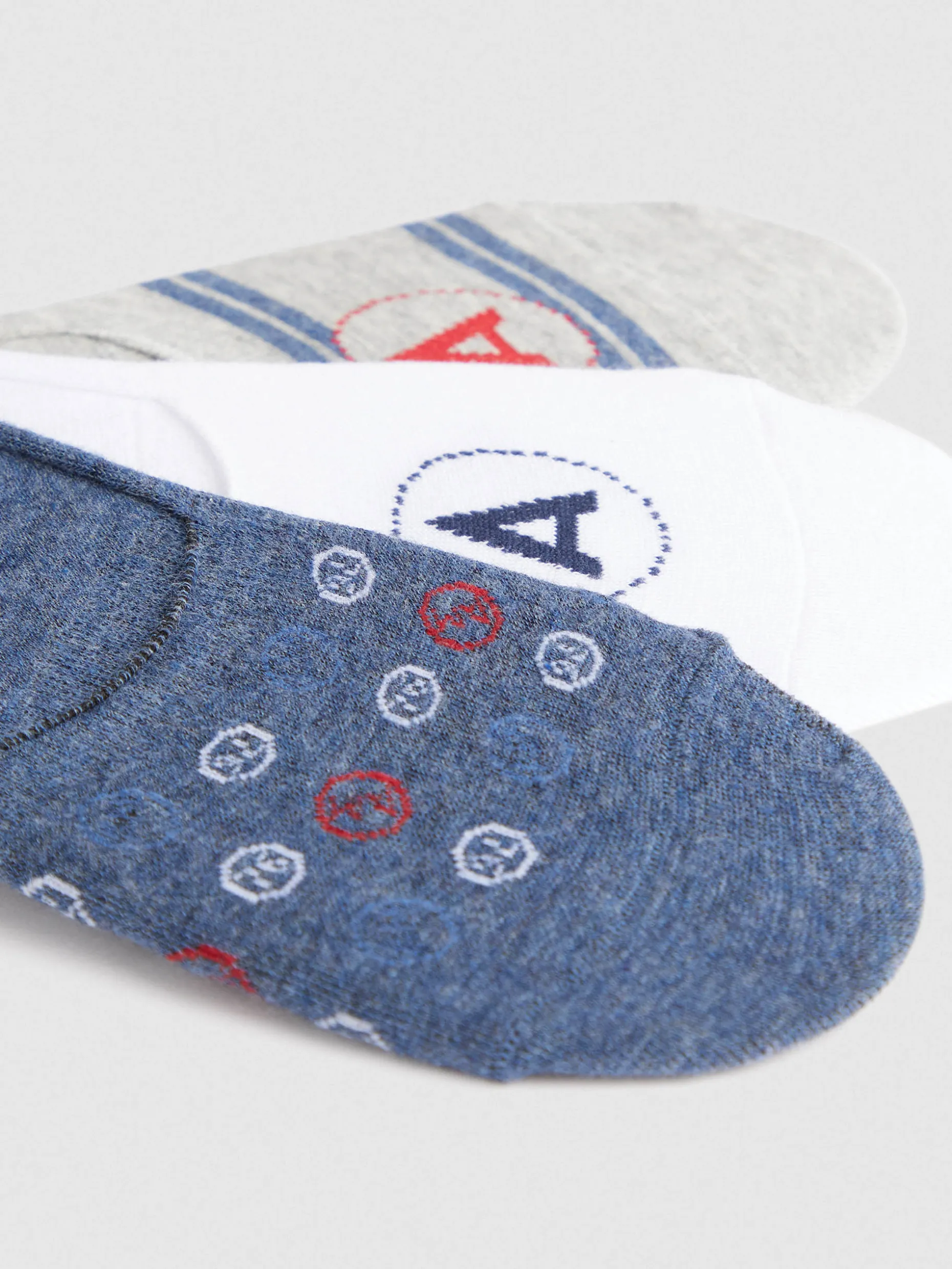 Pack de tres pares de calcetines estilo pinkys con diseños personalizados. Acabado en rib para un ajuste perfecto.