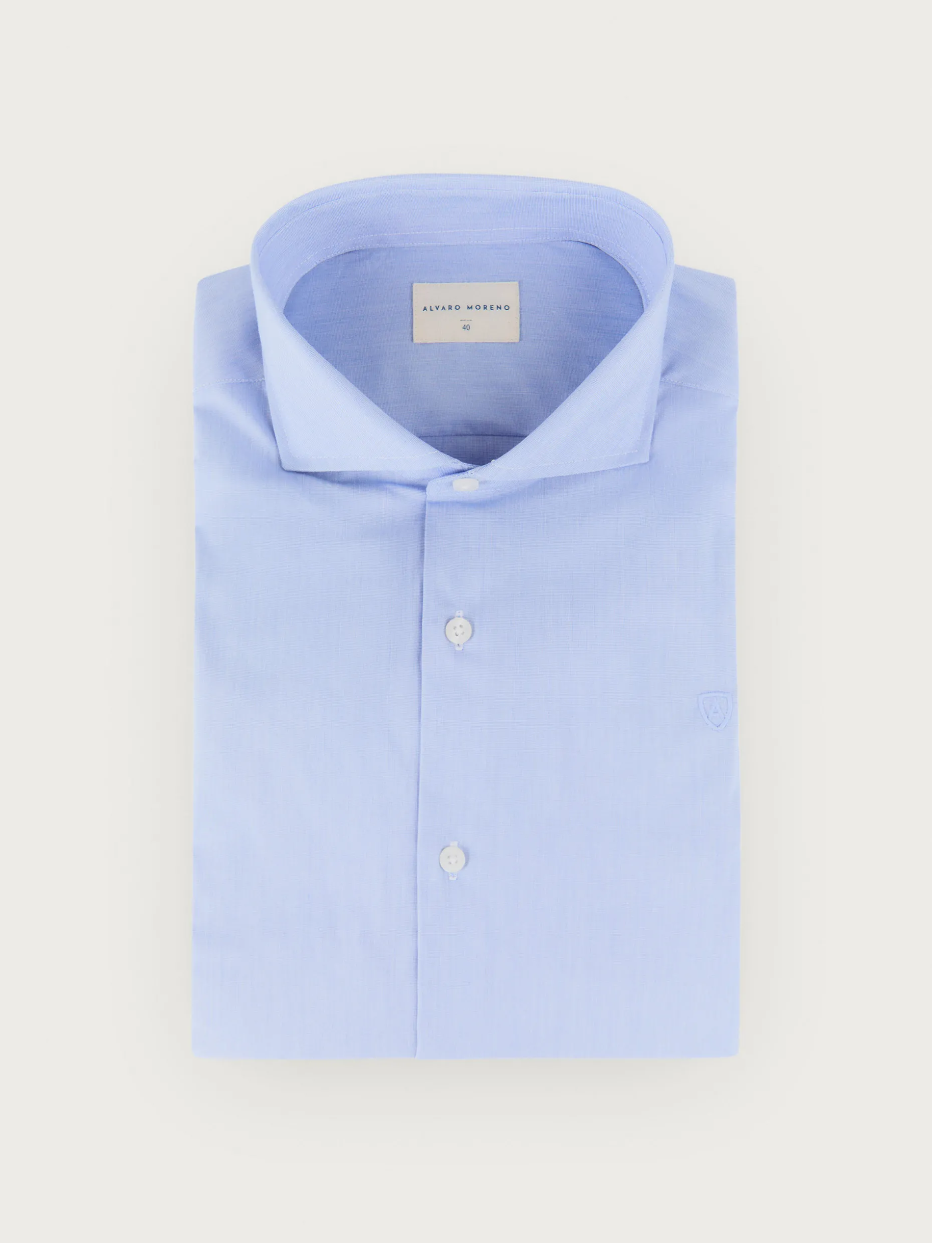 Camisa de vestir confeccionada en tejido fil fil de corte slim fit. Cuenta con cuello italiano, manga larga con puños simples y logo de la marca grabado en el frontal.