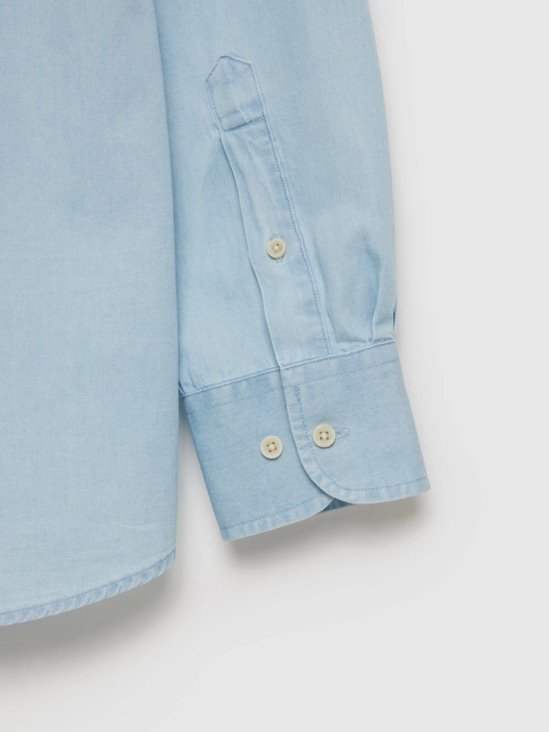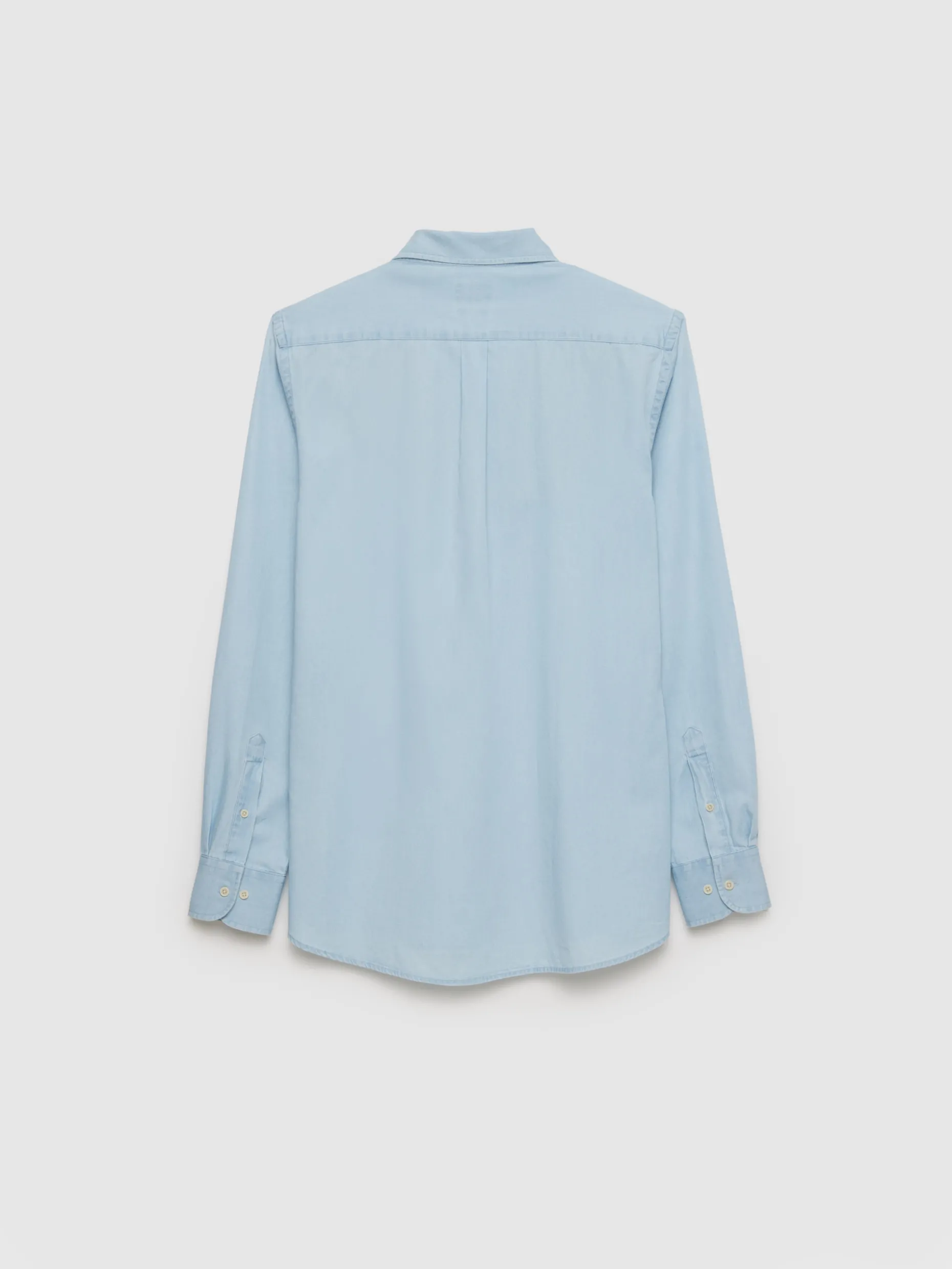 Camisa estilo denim confeccionada en algodón. Cuenta con cuello de solapa, manga larga de puños simples y logo de la marca grabado en el frontal. Corte regular fit.