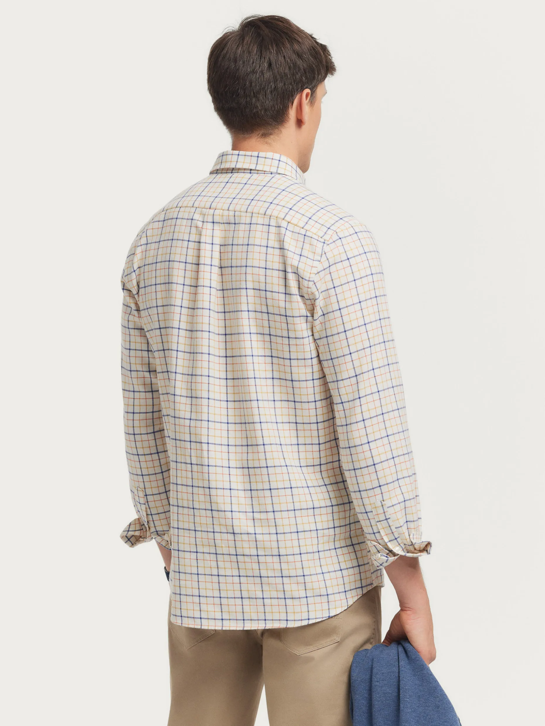 Camisa a cuadros confeccionada en tejido de franela. Cuenta con cuello clásico de botón, manga larga con puños simples y logo de la marca grabado en el frontal. Corte regular fit.
