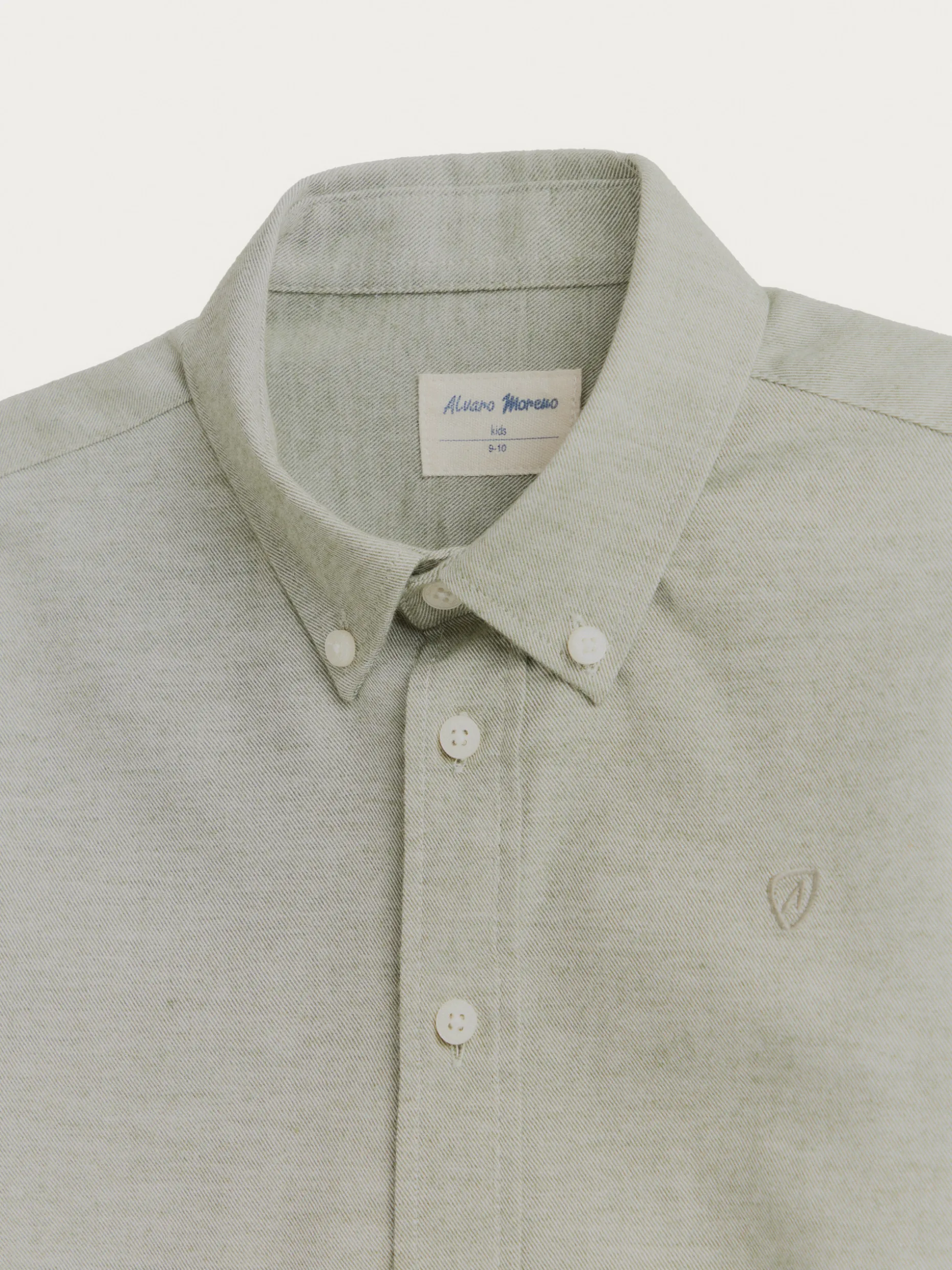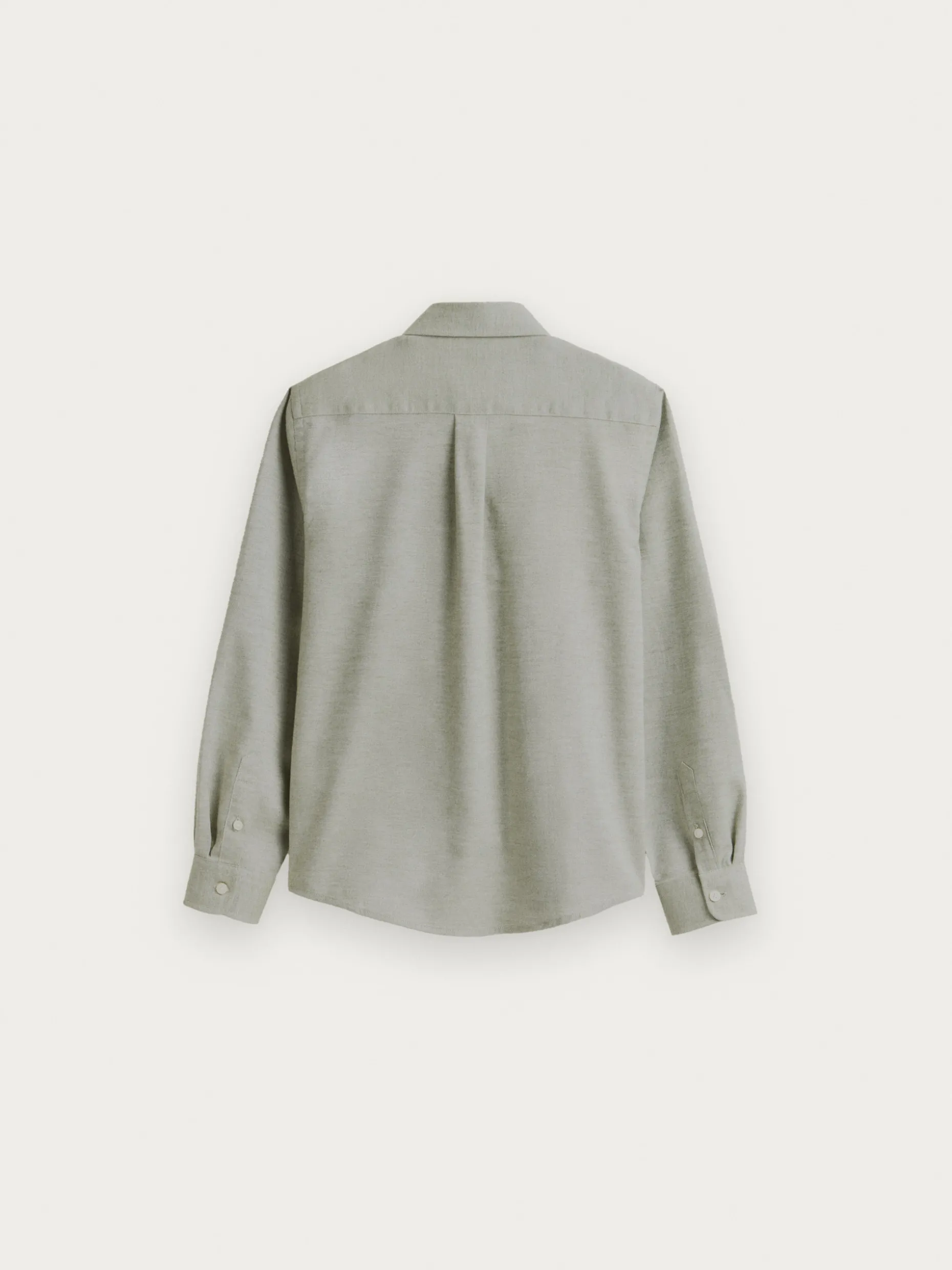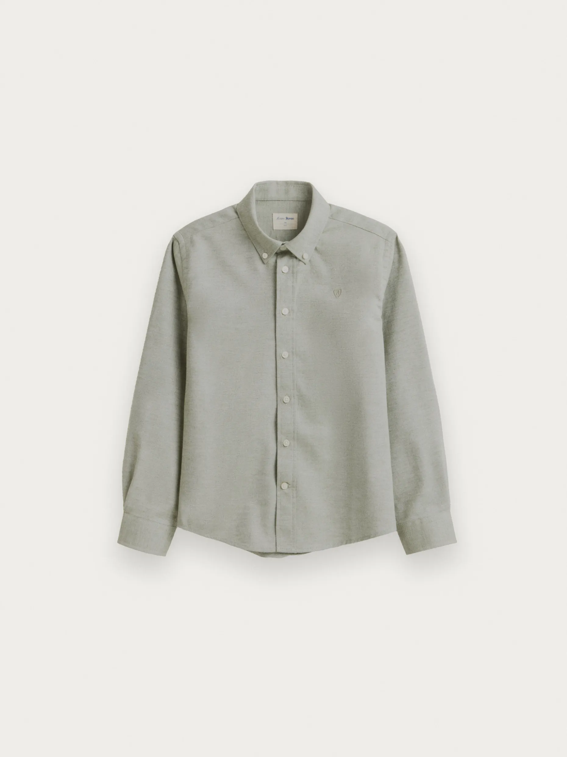 Camisa confeccionada en tejido de franela con cuello clásico de botón, manga larga con puños simples y logo de marca grabado en el frontal. Corte regular fit.