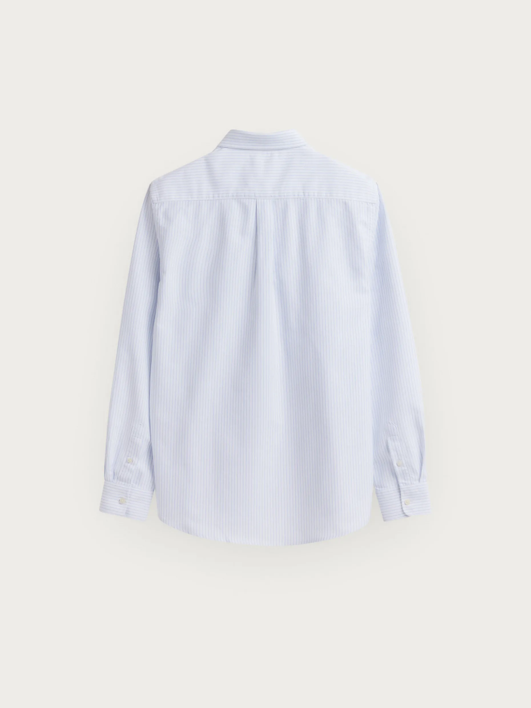 Camisa a rayas confeccionada en algodón con cuello clásico de botón, manga larga con puños simples y logo de la marca grabado en el frontal al tono. Corte regular fit.