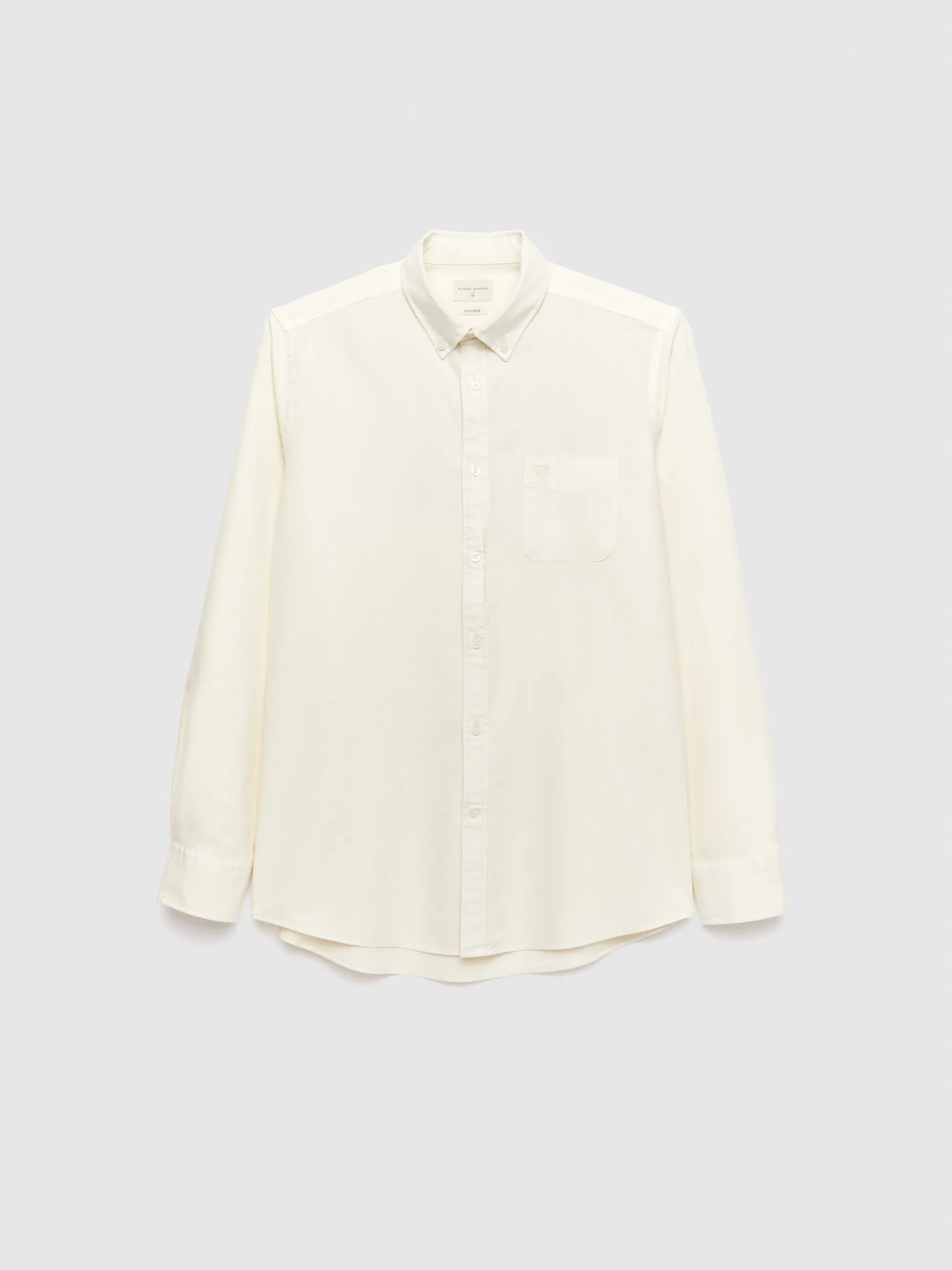 Camisa confeccionada en algodón con cuello clásico de botón, bolsillo en el frontal y manga larga de puños simples. Corte regular fit.