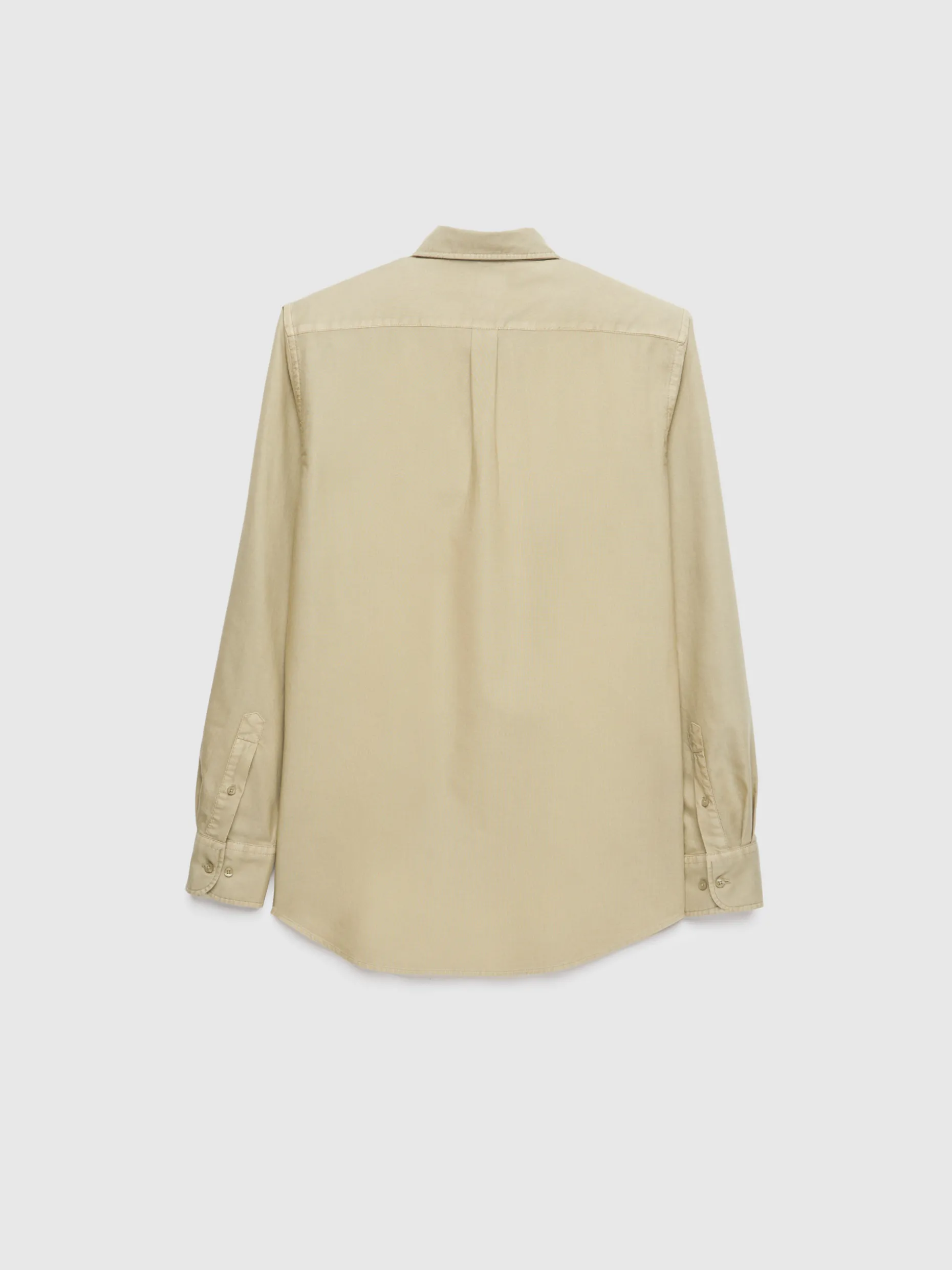 Camisa confeccionada en algodón con cuello clásico de botón, bolsillo en el frontal y manga larga de puños simples. Corte regular fit.