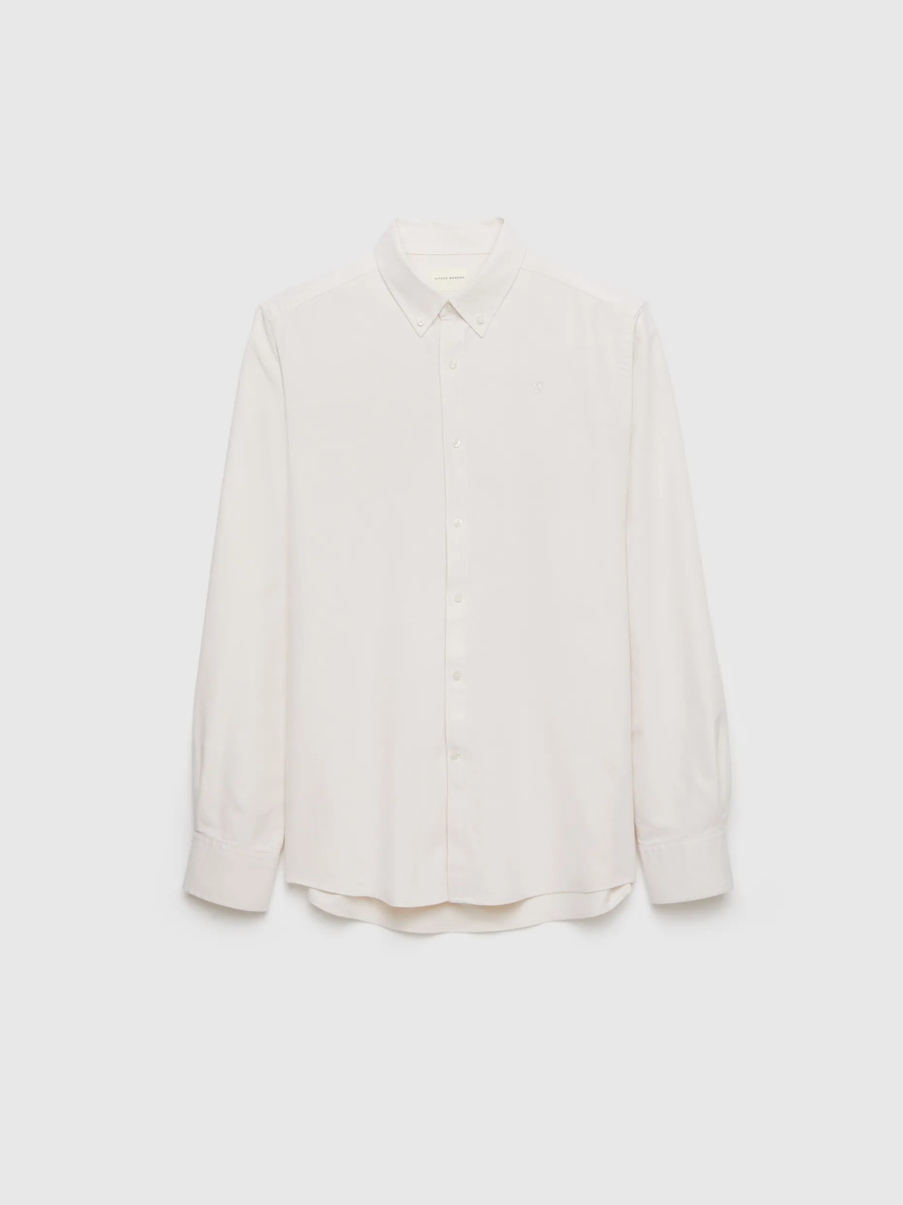 Camisa confeccionada en algodón con cuello clásico de botón, logo grabado en el frontal al tono y manga larga de puños simples. Corte regular fit.