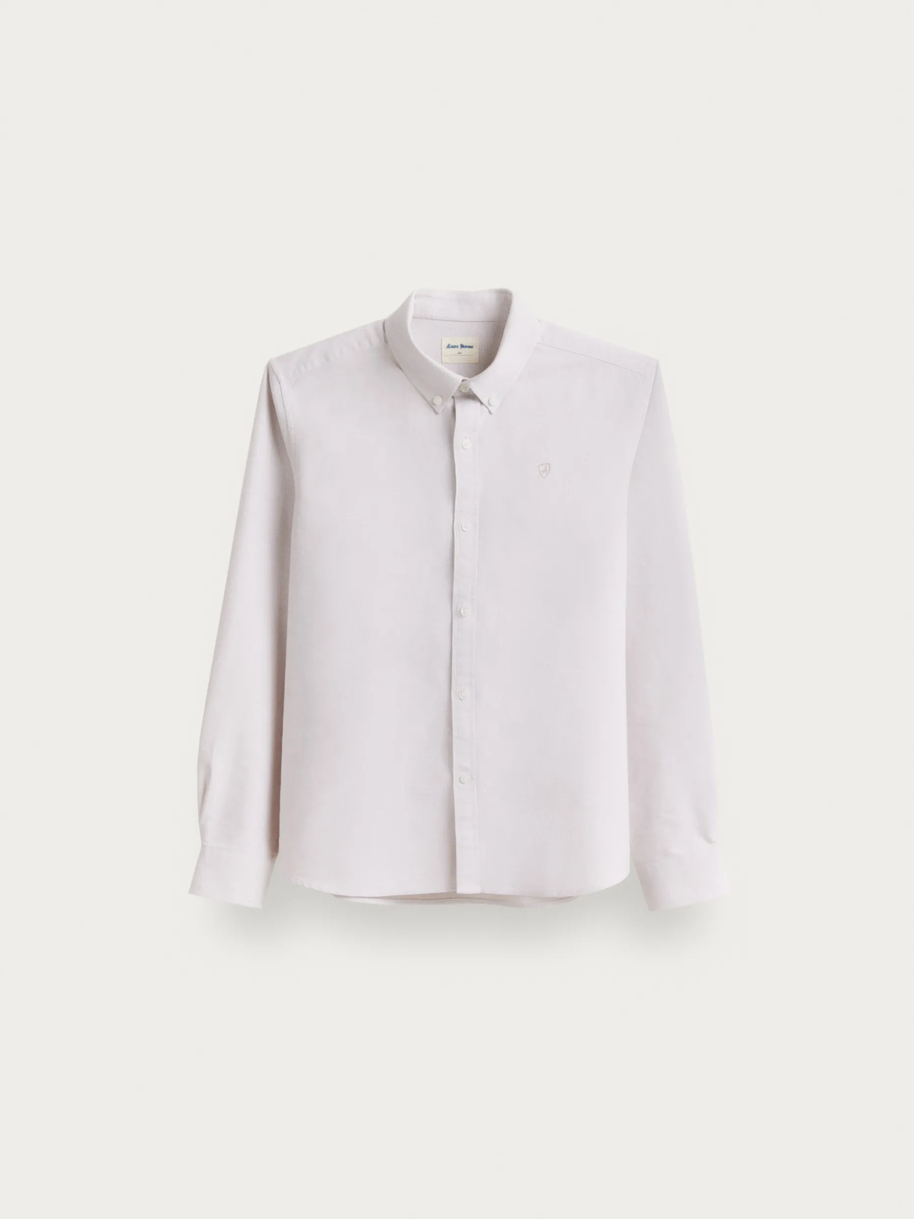 Camisa de corte regular fit con cuello clásico de botón, manga larga con puños simples y logo de la marca grabado en el frontal al tono.