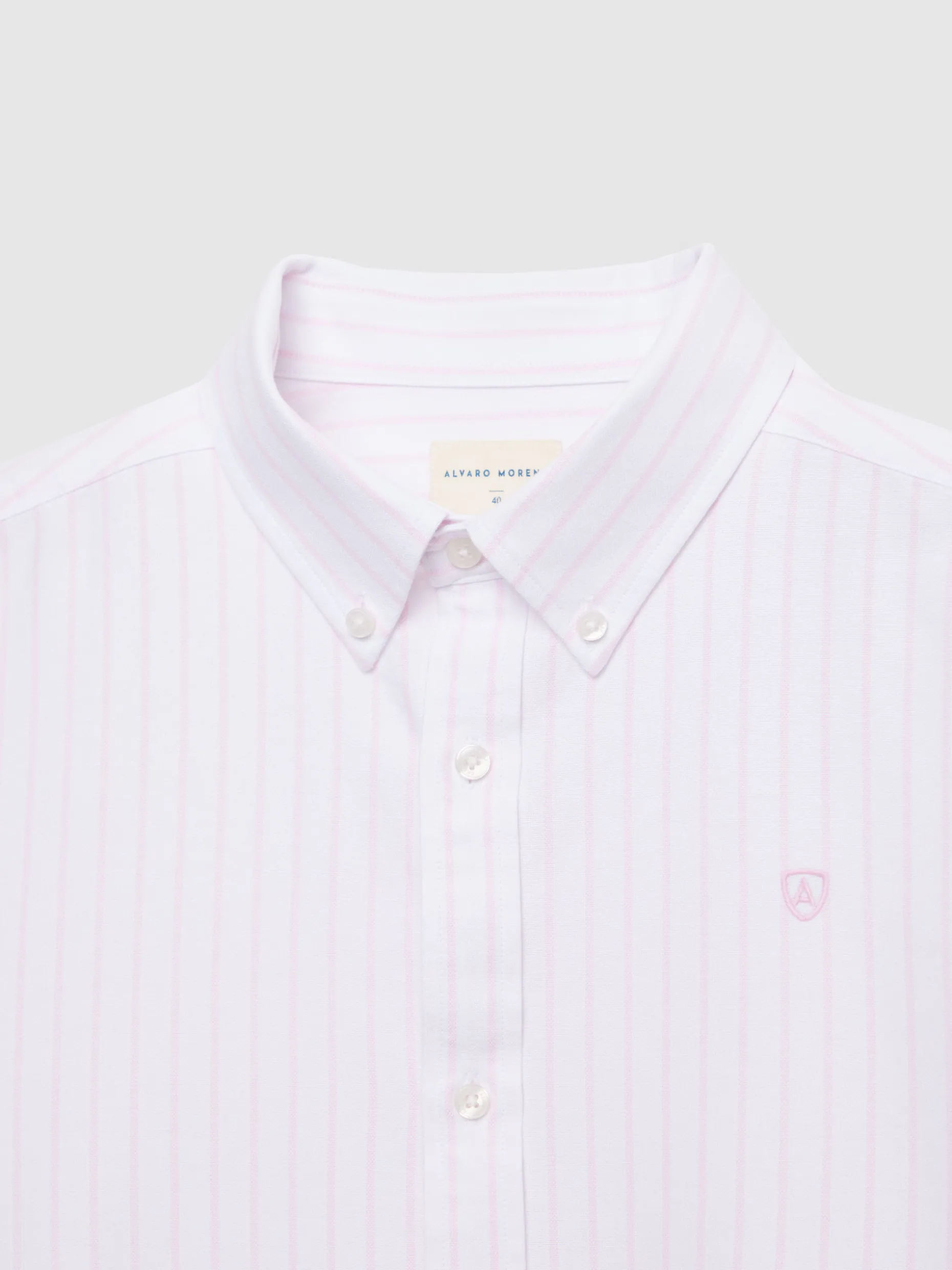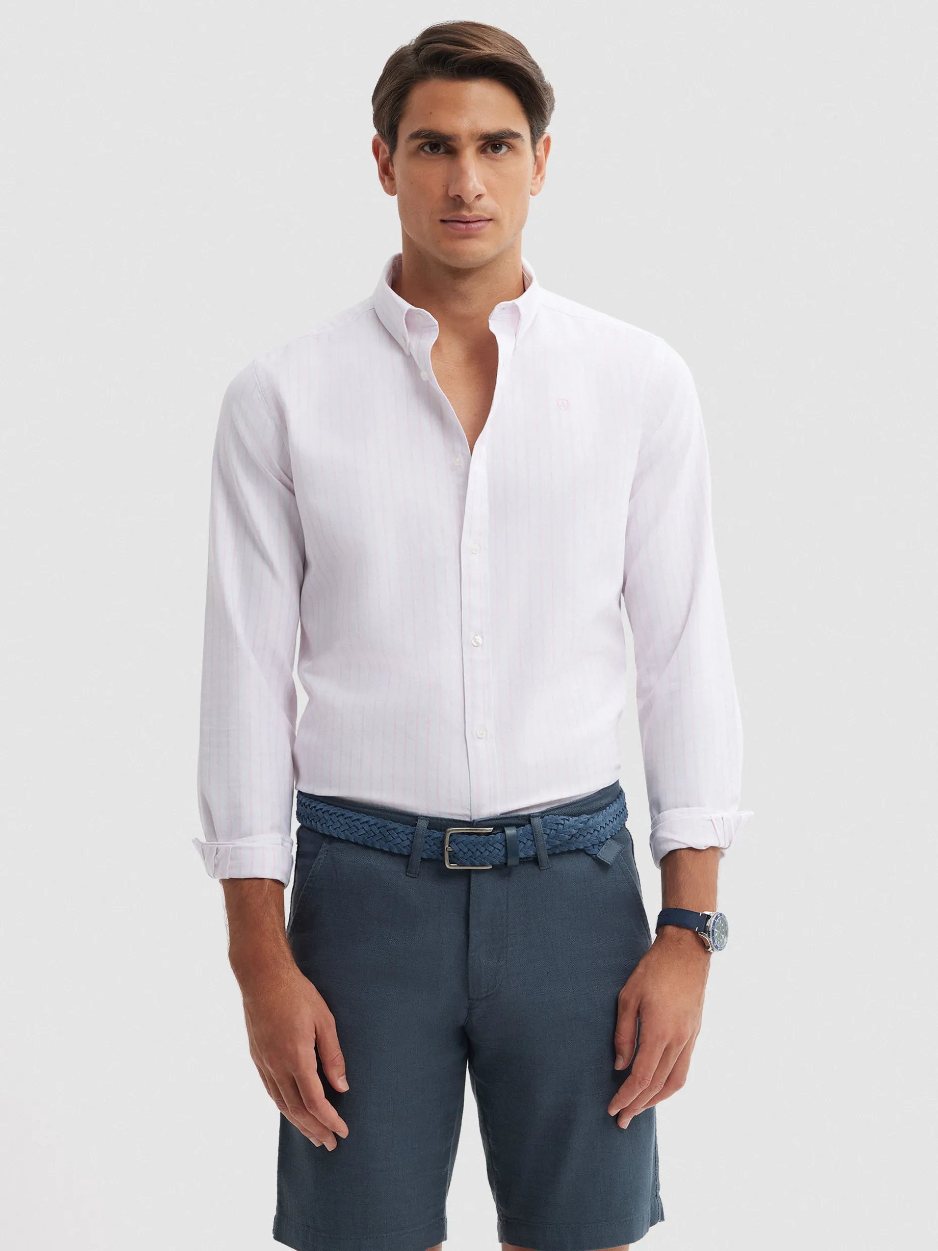 Camisa estilo a rayas confeccionada en algodón. Cuenta con cuello botón, manga larga de puños simples y logo grabado al tono en el frontal. Corte regular fit.