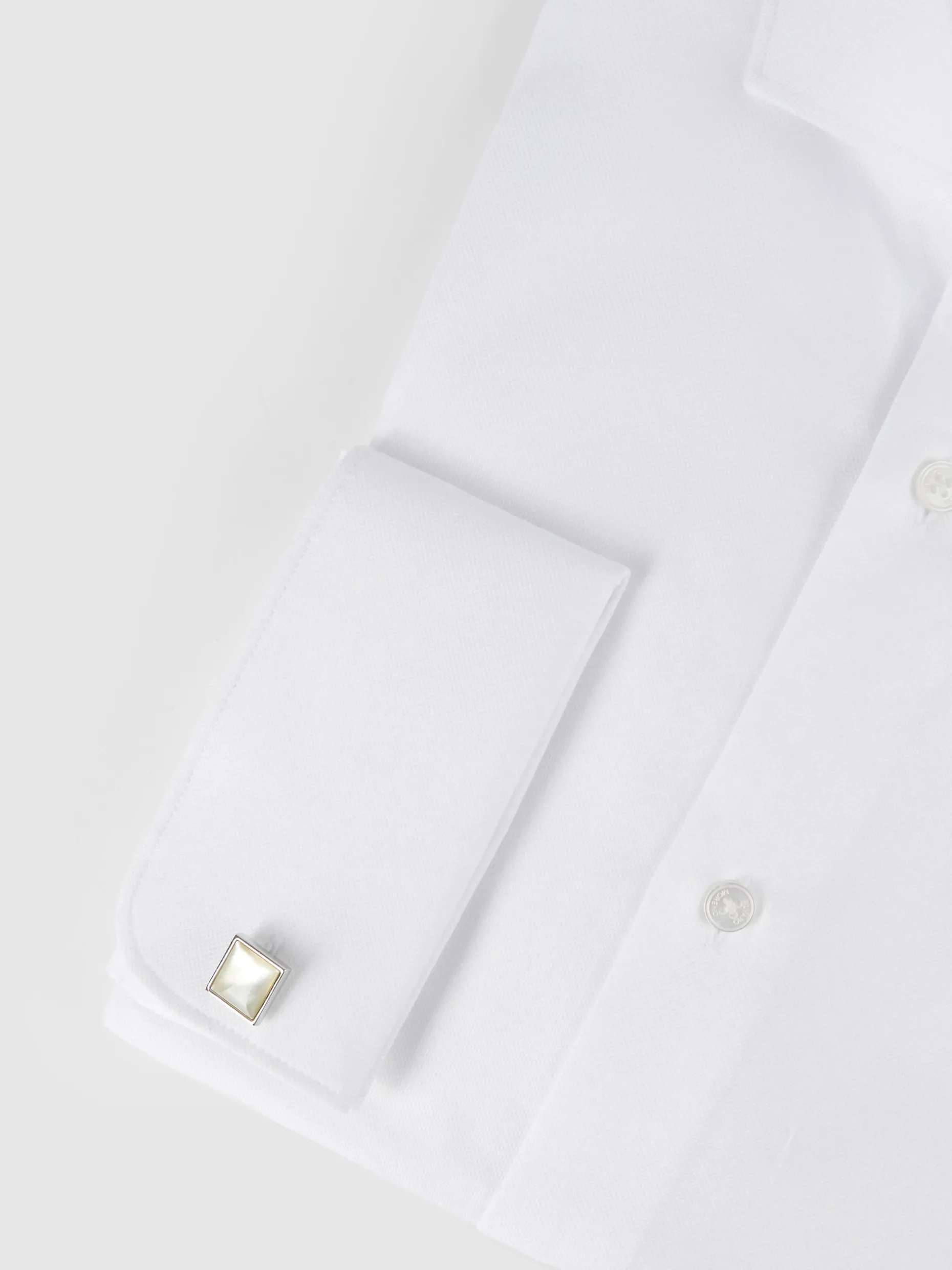 Camisa con una suave estructura en su tejido confeccionada en algodón. Cuenta con cuello italiano, puños dobles para gemelos y logo de la marca grabado al tono en el frontal. Corte slim fit.