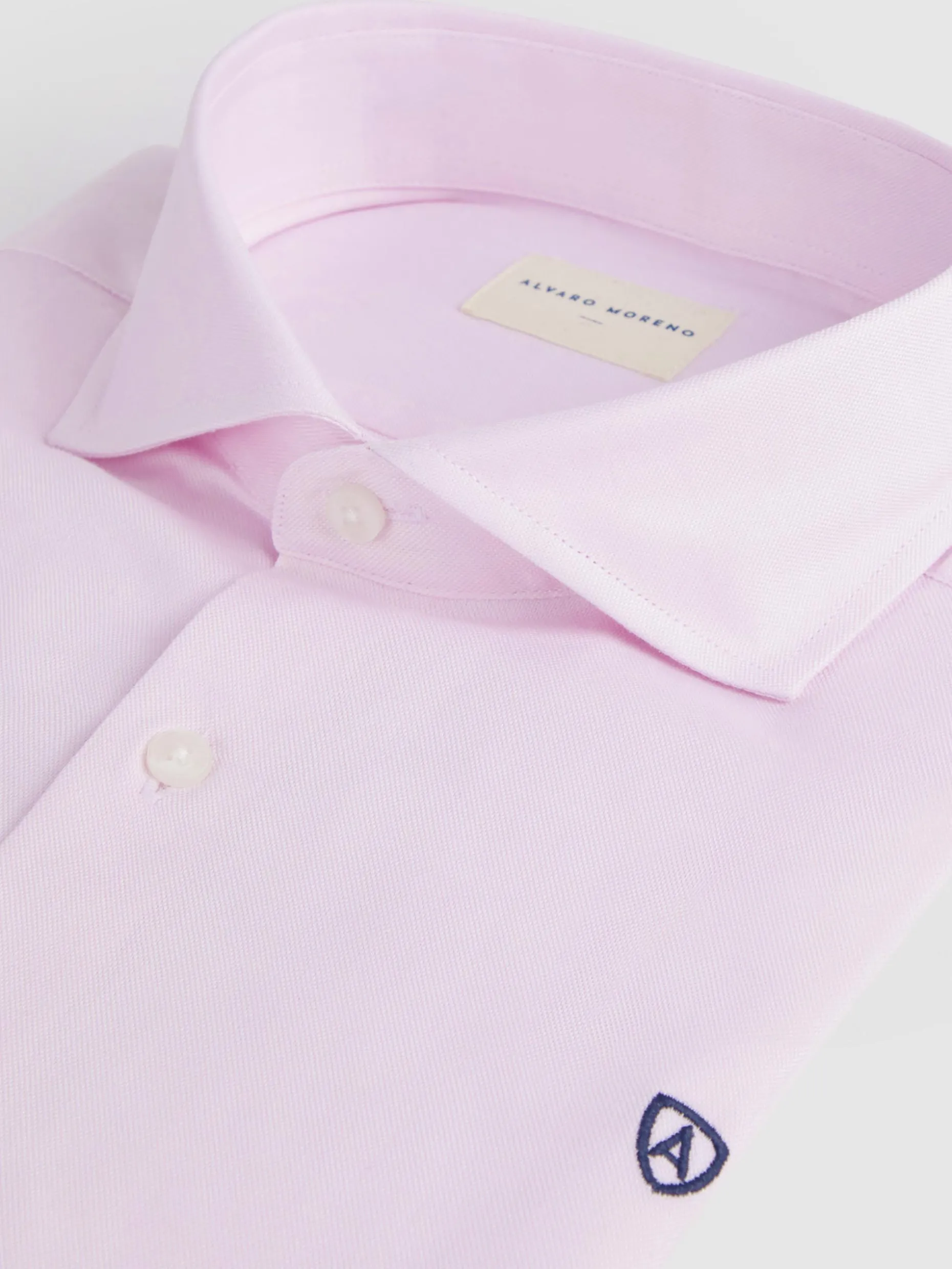 Camisa de vestir confeccionada en tejido con estructura. Cuenta con cuello italiano, manga larga con puños simples y logo de la marca grabado en el frontal. Corte slim fit.