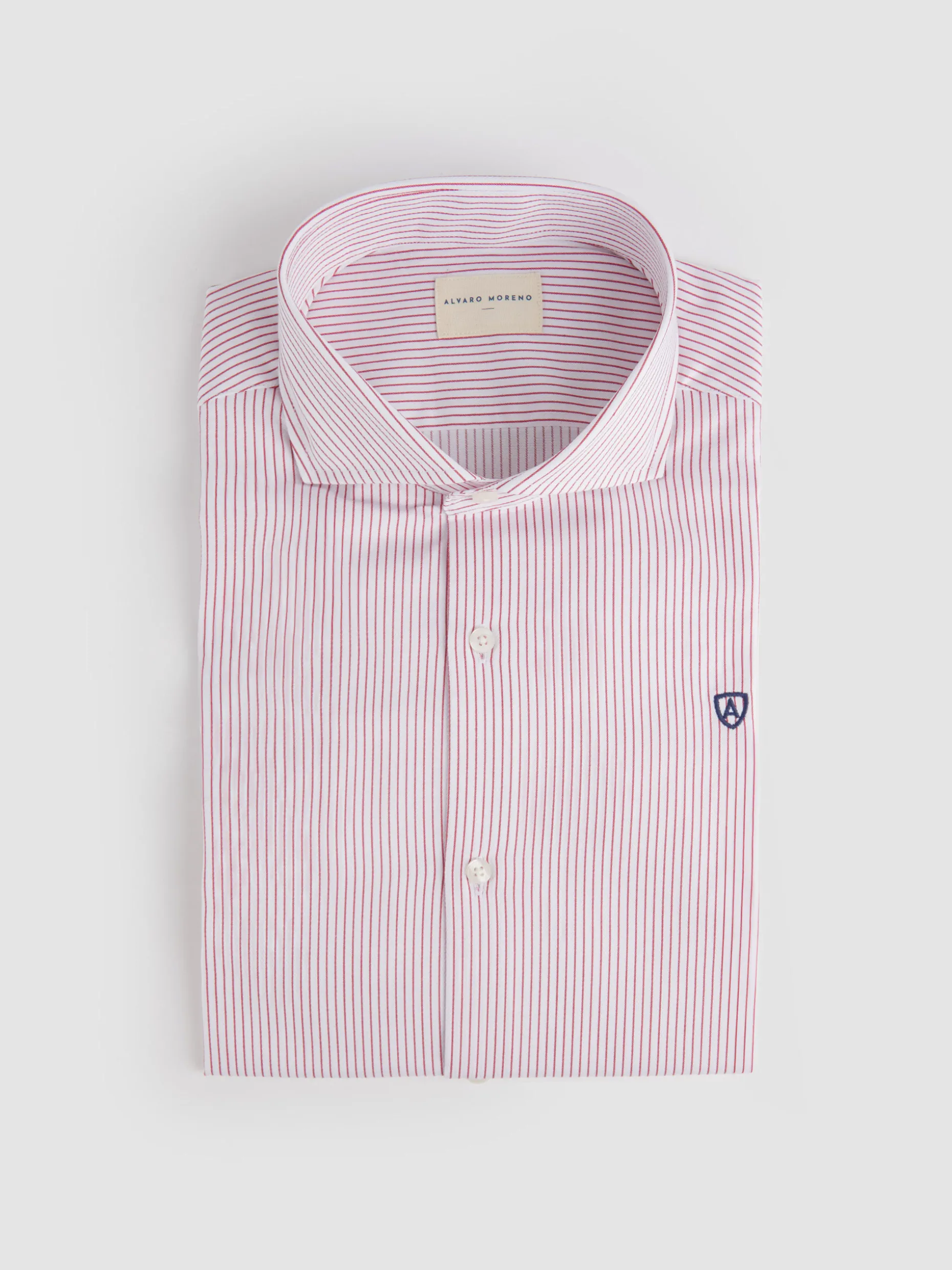 Camisa de vestir a rayas confeccionada en algodón. Cuenta con cuello italiano, puños simples y logo de la marca grabado en el frontal. Corte slim fit.