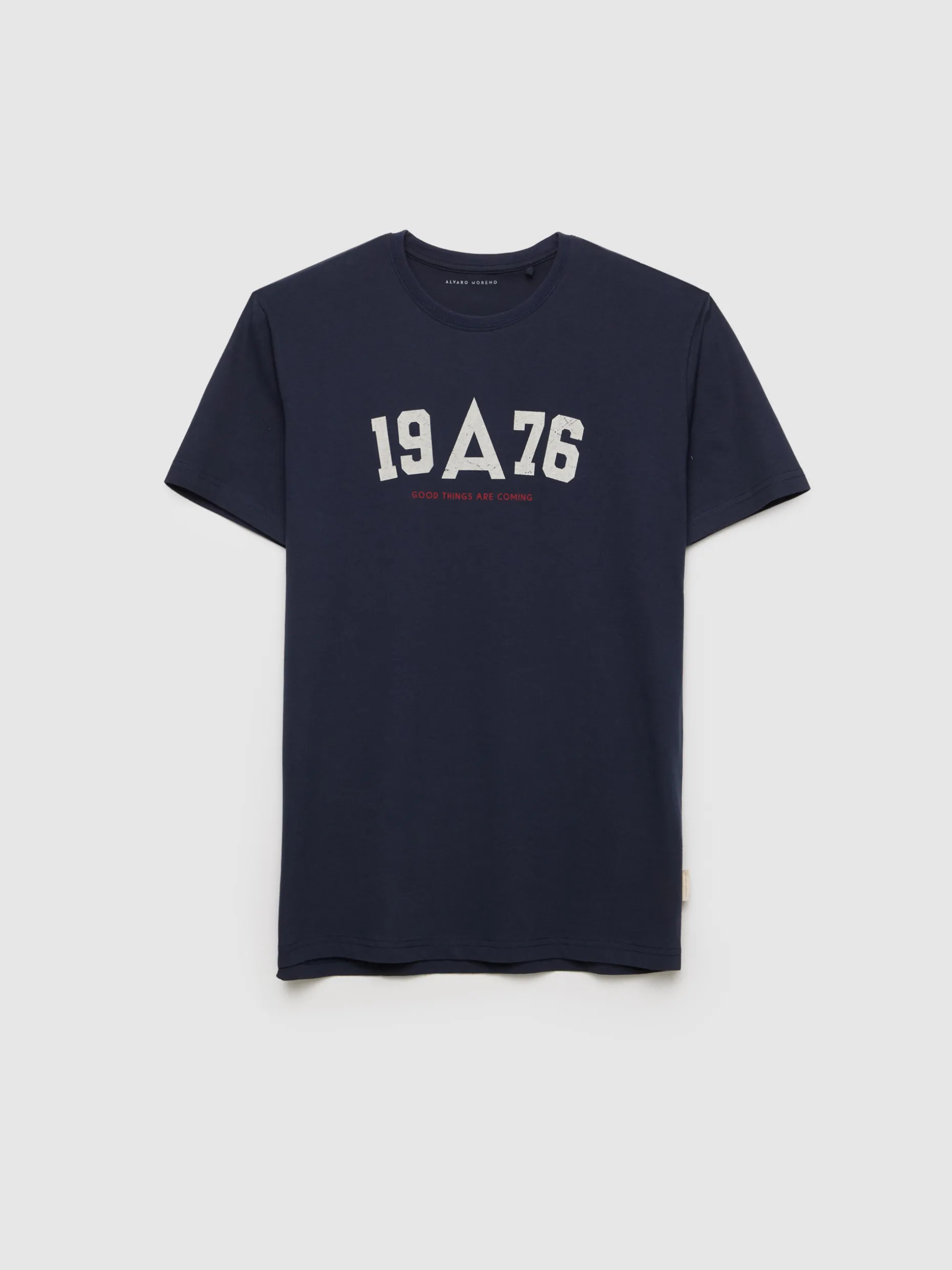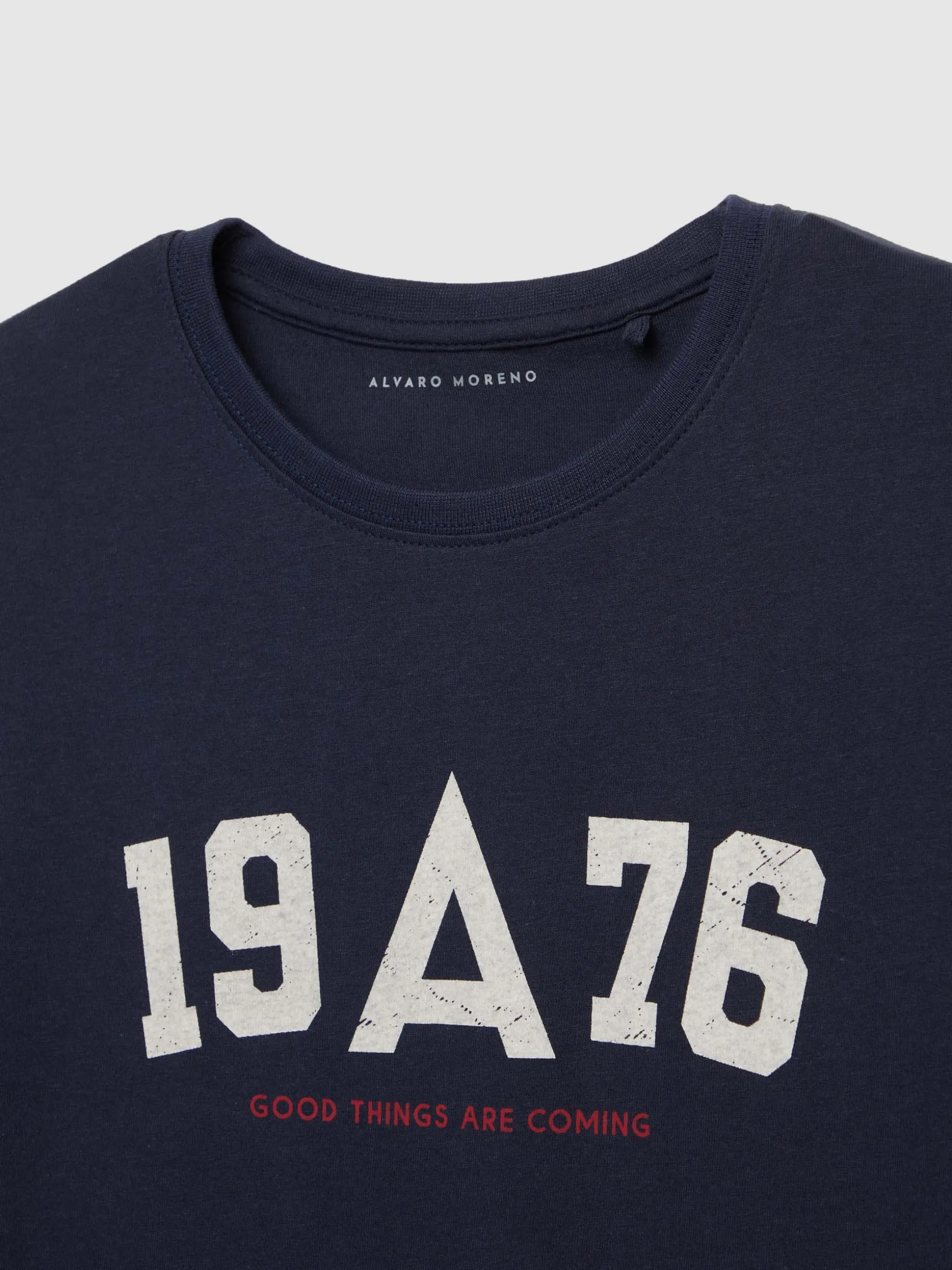 Camiseta con estampado personalizado en el frontal. Cuenta con cuello redondo, manga corta y etiqueta canvas en el bajo. Corte regular fit.