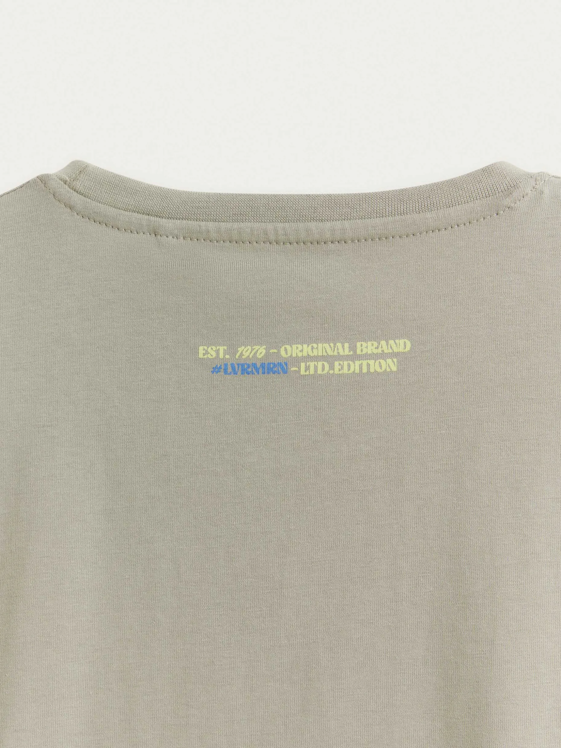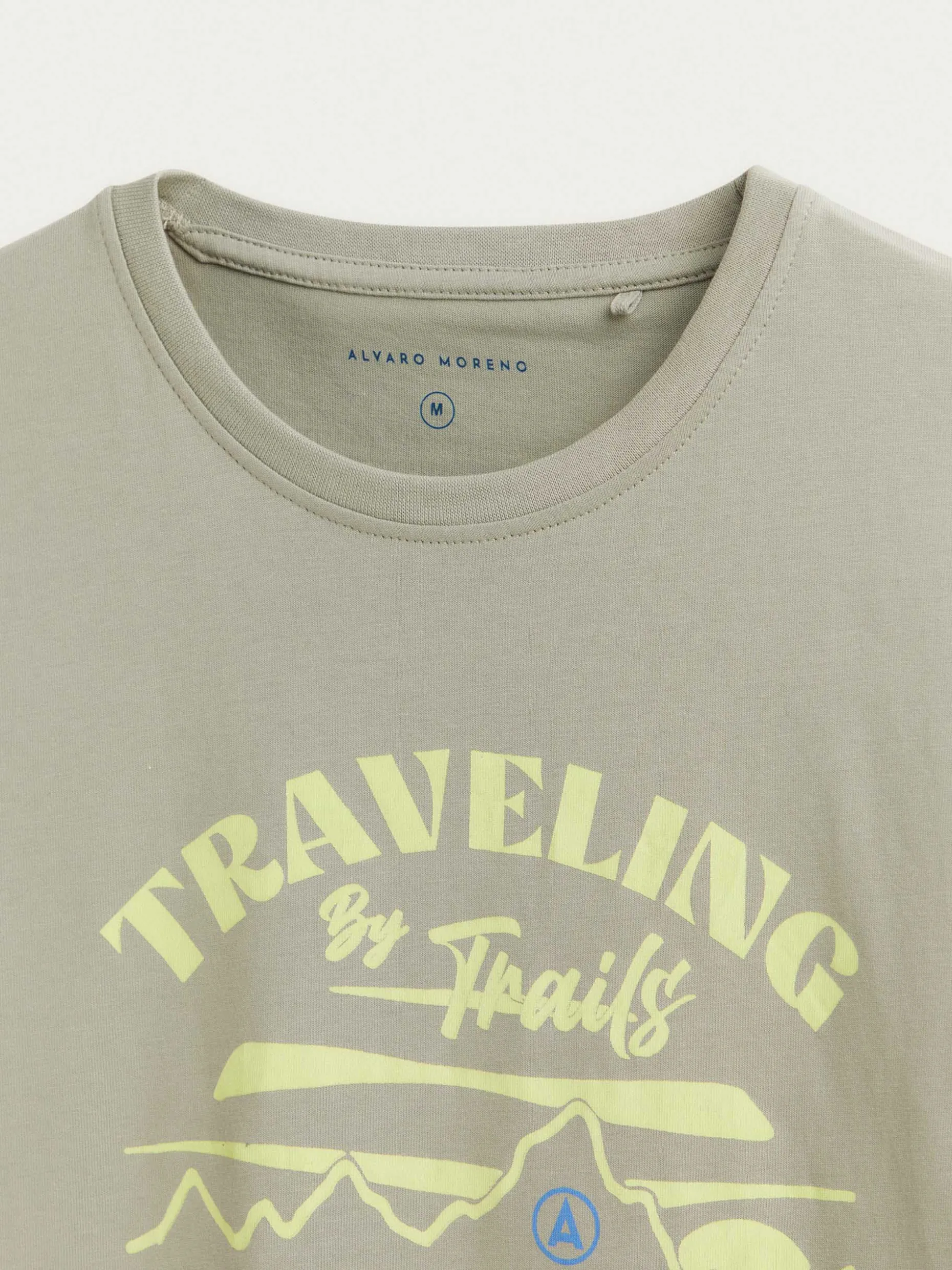 Camiseta confeccionada en algodón de corte regular fit. Cuenta con cuello redondo, manga corta y detalle personalizado estampado en la parte delantera y trasera.
