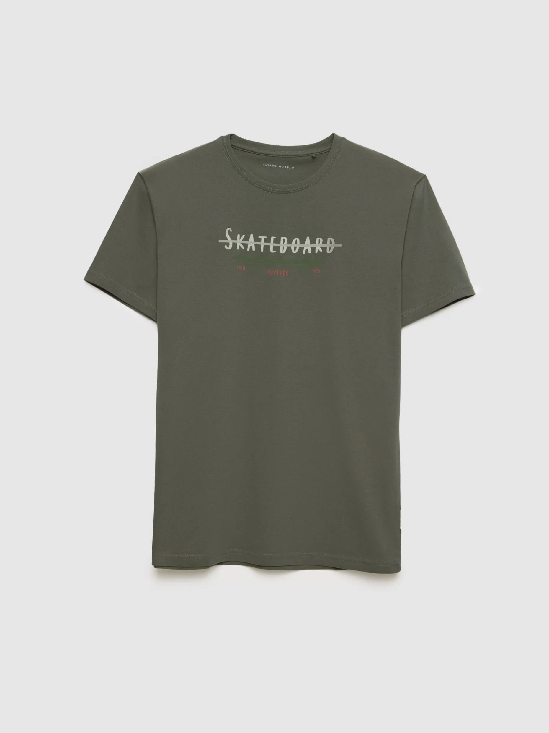 Camiseta con estampación personalizada en el frontal confeccionada en algodón. Cuenta con cuello redondo, manga corta y etiqueta canvas en el bajo. Corte regular fit.