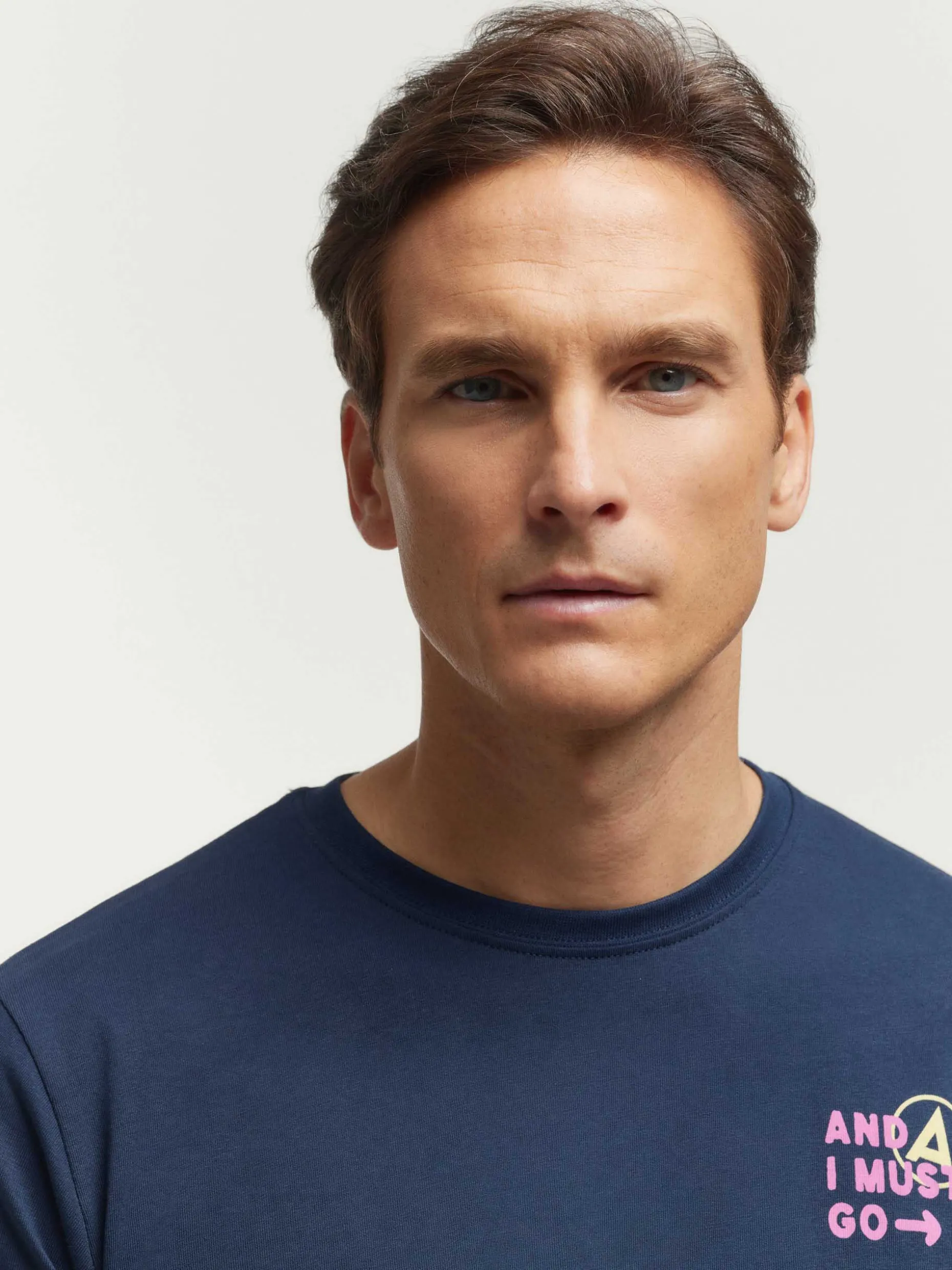 Camiseta con estampación personalizada en el frontal y en la parte trasera. Cuello redondo,manga corta y etiqueta canvas en el lateral. Corte regular fit.