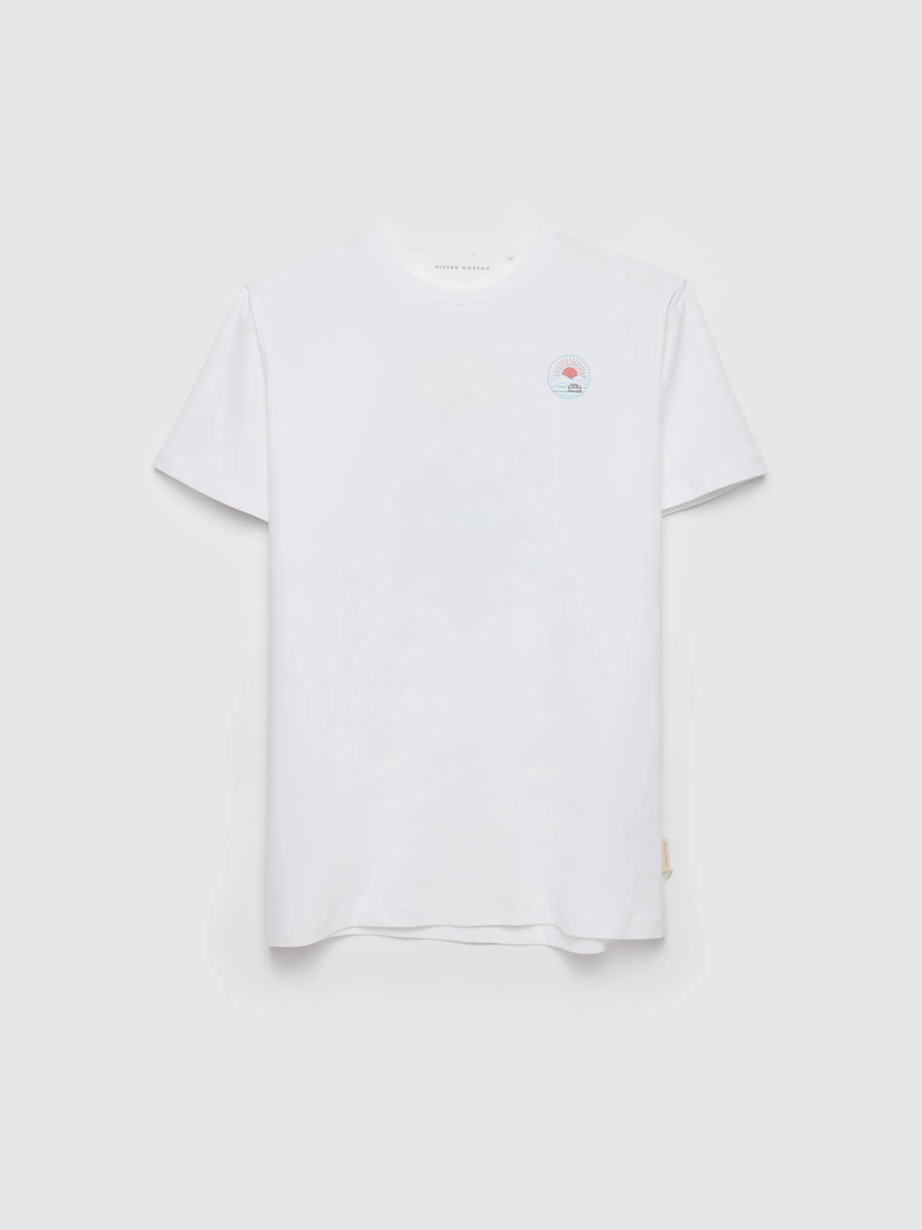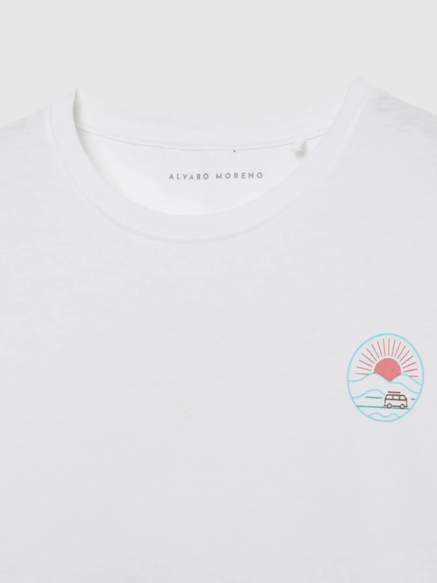 Camiseta con estampado personalizado en el frontal y en la espalda. Cuenta con cuello redondo, manga corta y etiqueta canvas en el lateral. Corte regular fit.