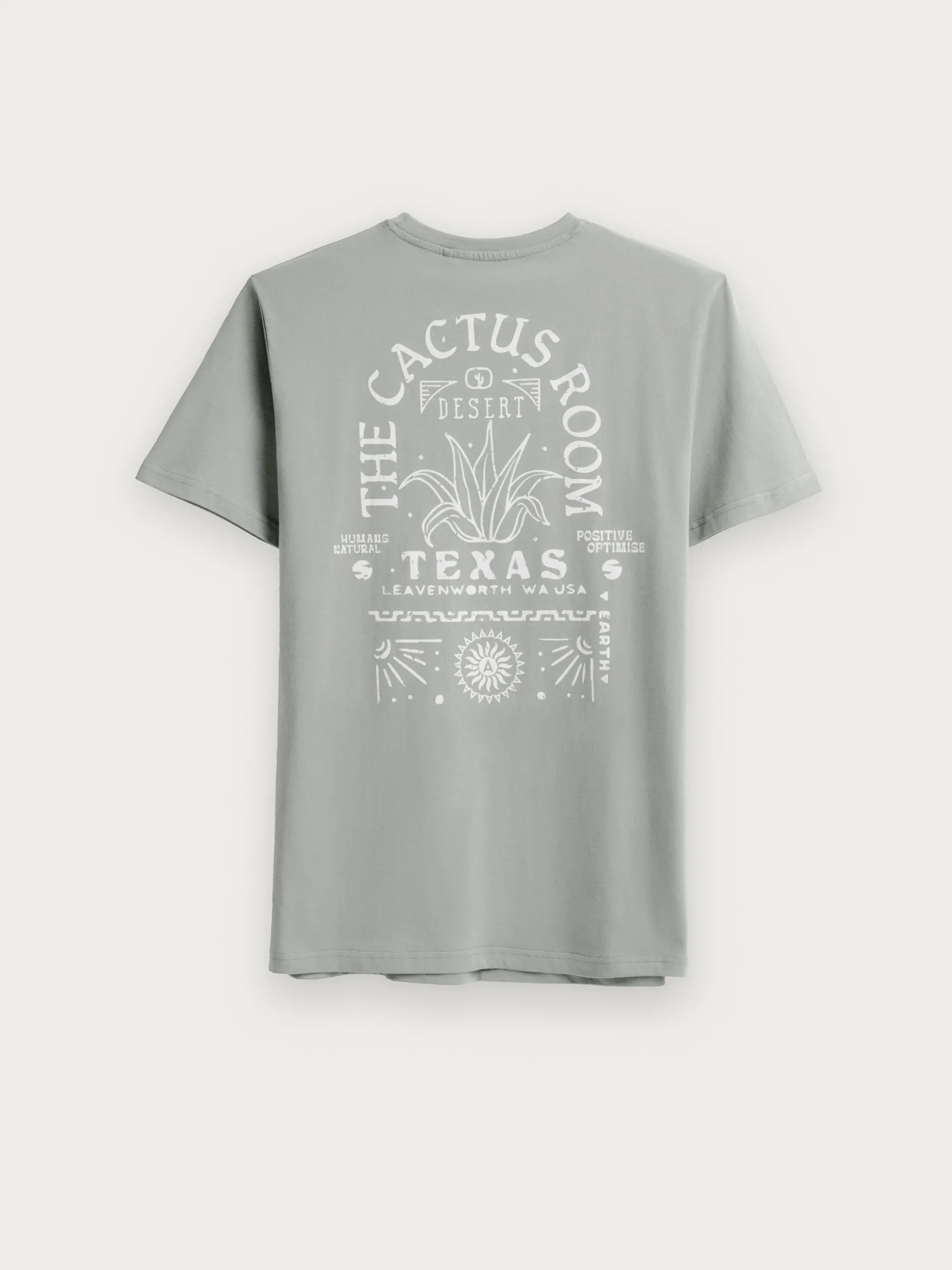 Camiseta de corte regular fit confeccionada en algodón. Cuenta con estampado personalizado en la parte frontal y trasera, cuello redondo y manga corta.