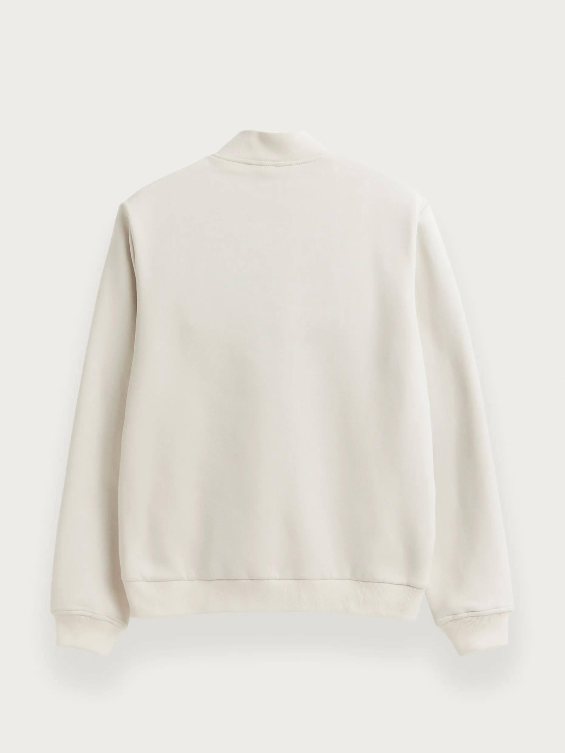 Cazadora estilo bomber con cuello y mangas en tejido de punto. Cuenta en su parte delantera con cierre central mediante cremallera, dos bolsillos y parche con el logo de la marca grabado en el pecho.