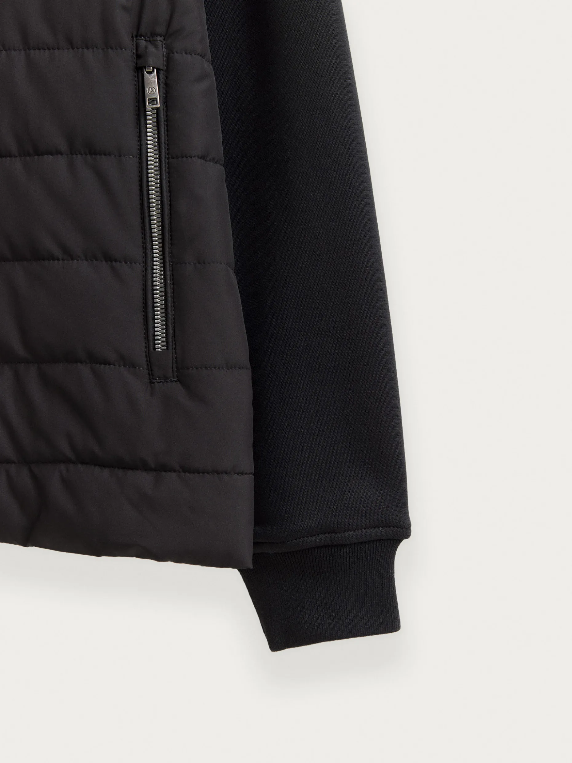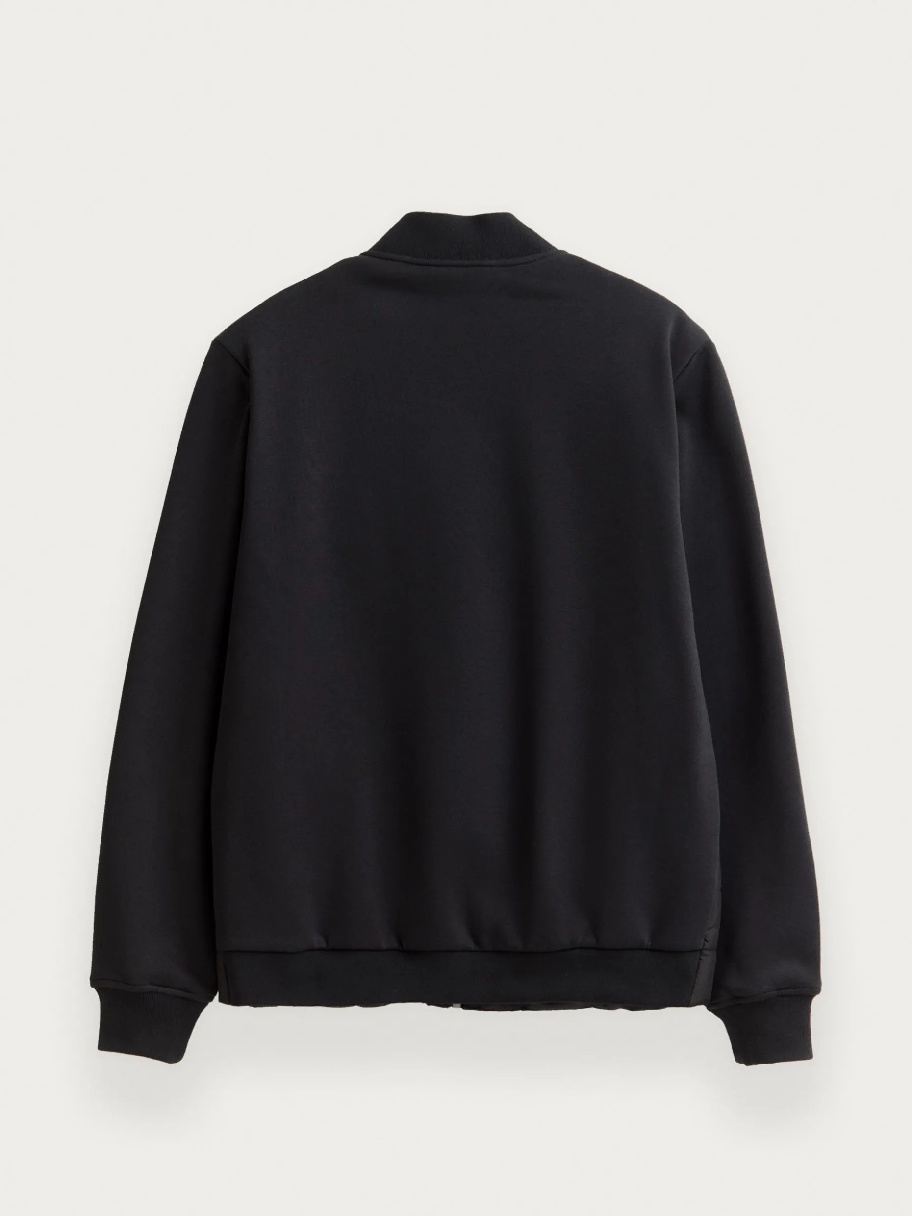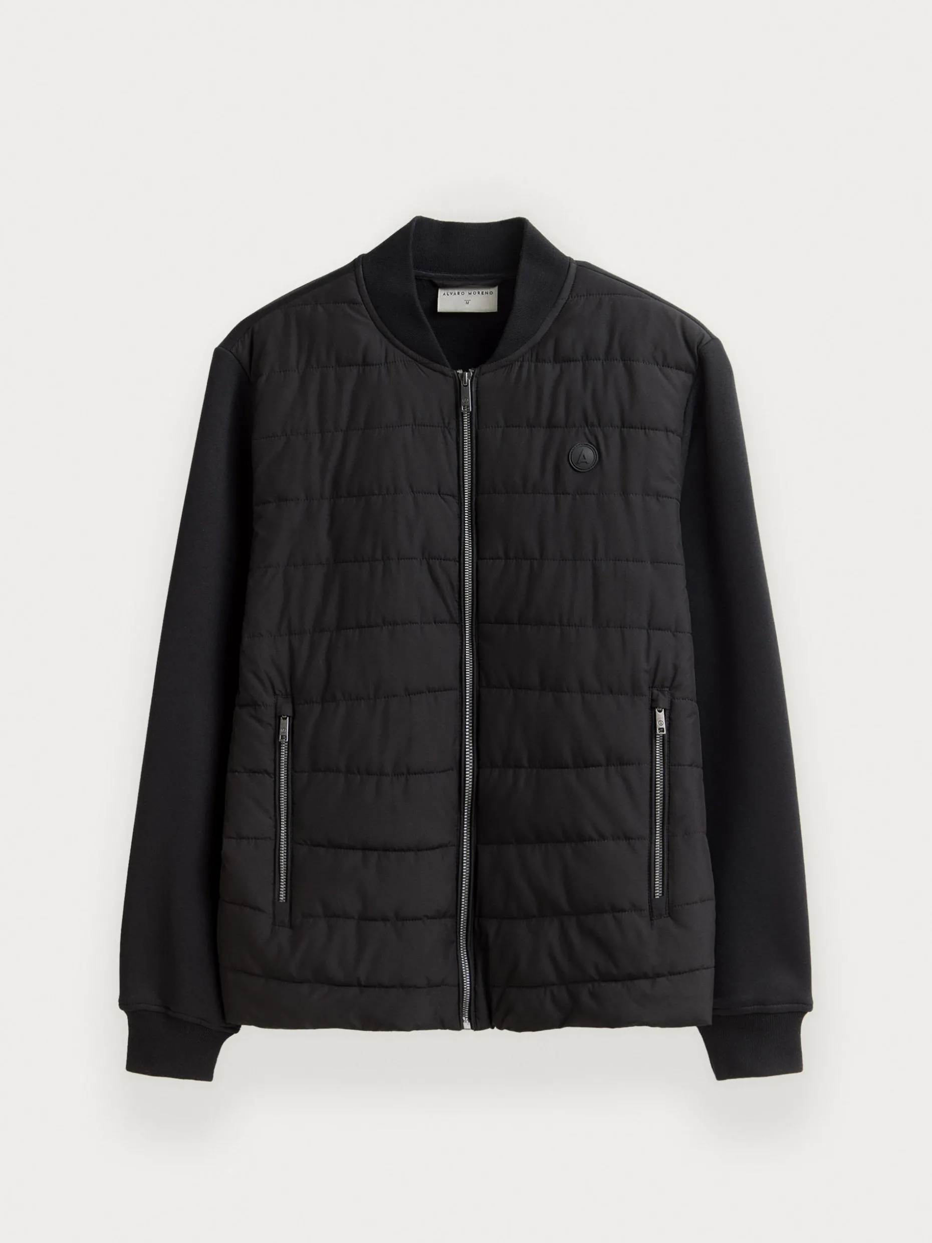Cazadora estilo bomber con cuello y mangas en tejido de punto. Cuenta en su parte delantera con cierre central mediante cremallera, dos bolsillos y parche con el logo de la marca grabado en el pecho.