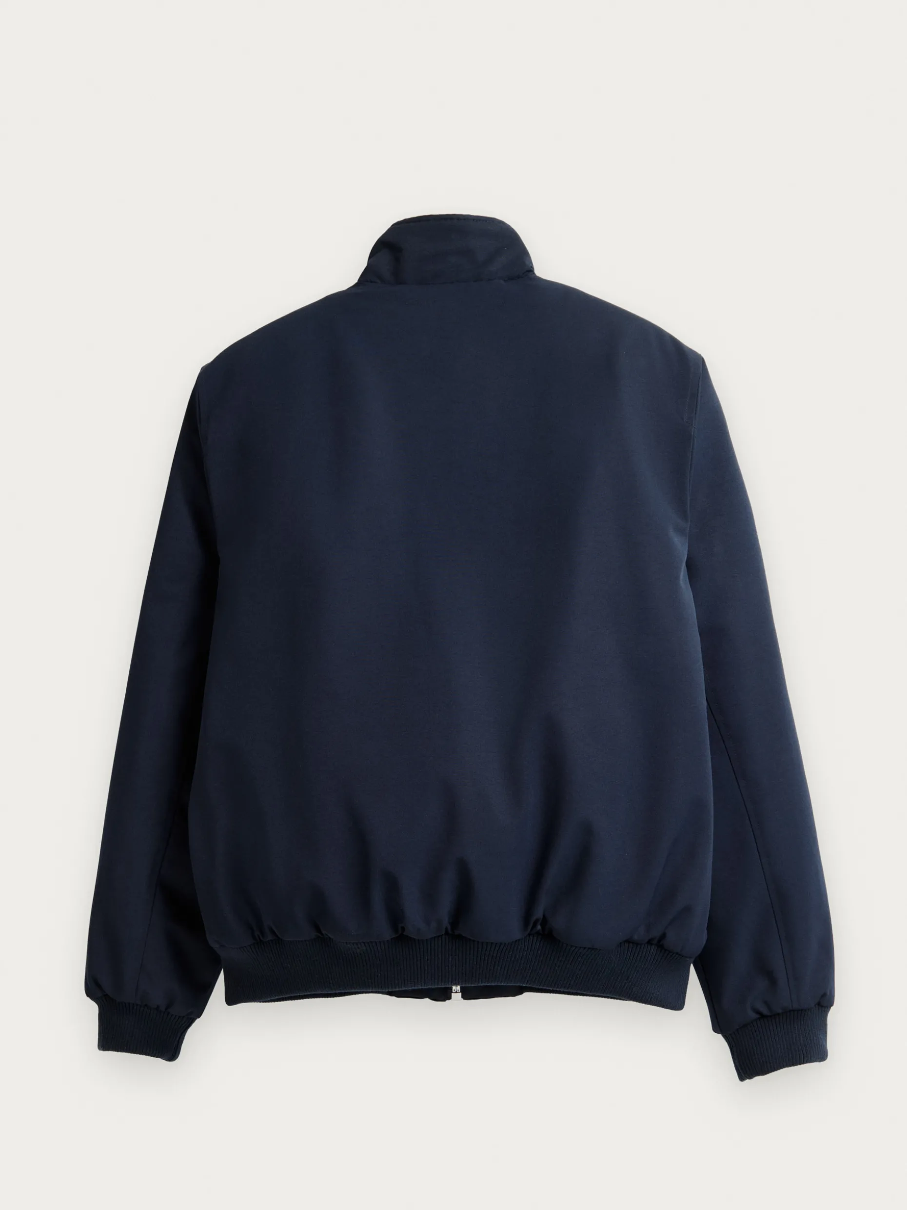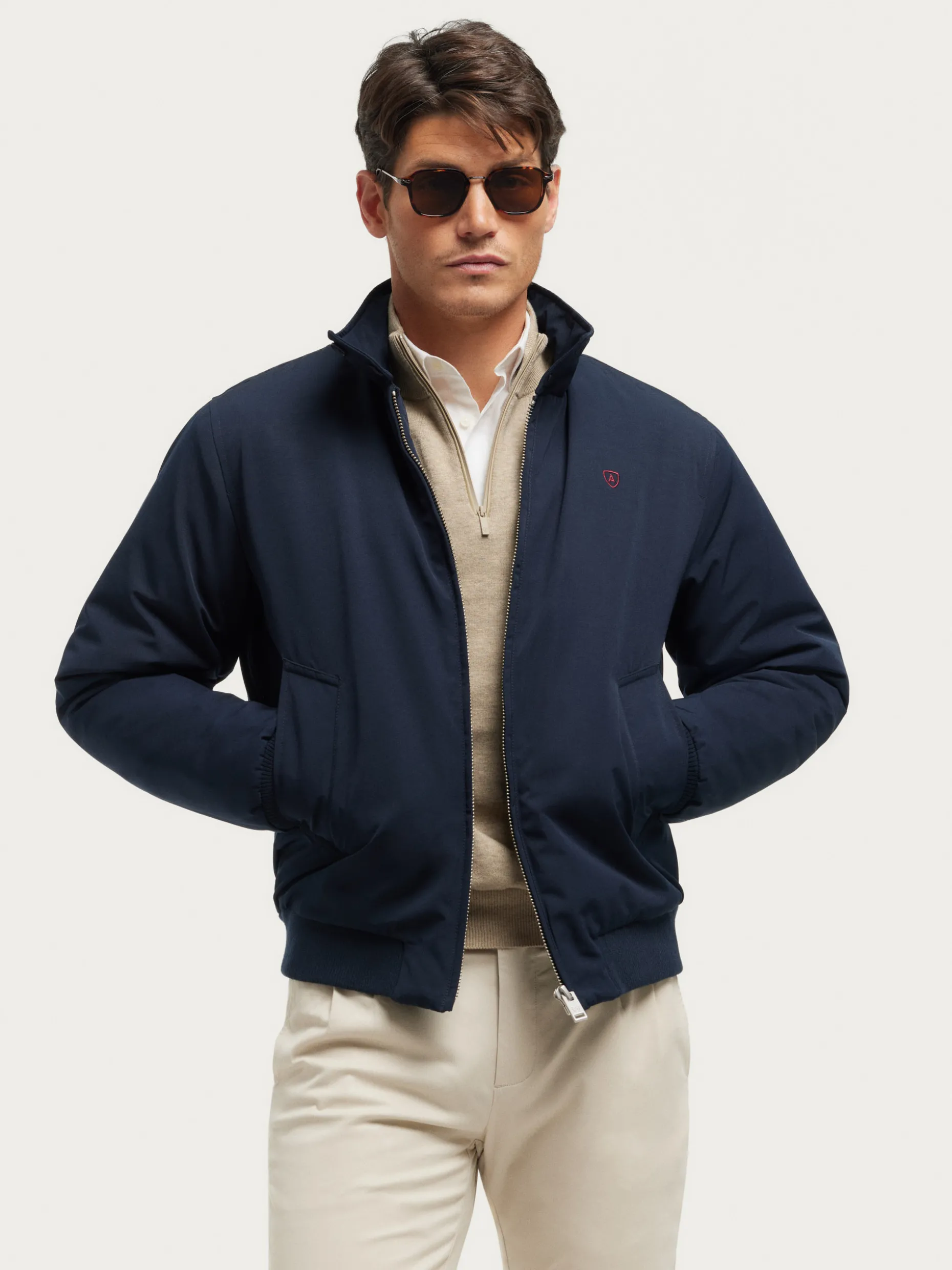 Cazadora con cuello subido, cierre central mediante cremallera y manga larga con puños en acabado elástico. Dos bolsillos a la altura de la cintura y bolsillo interior. Logo grabado en el frontal a contraste. Corte regular fit.