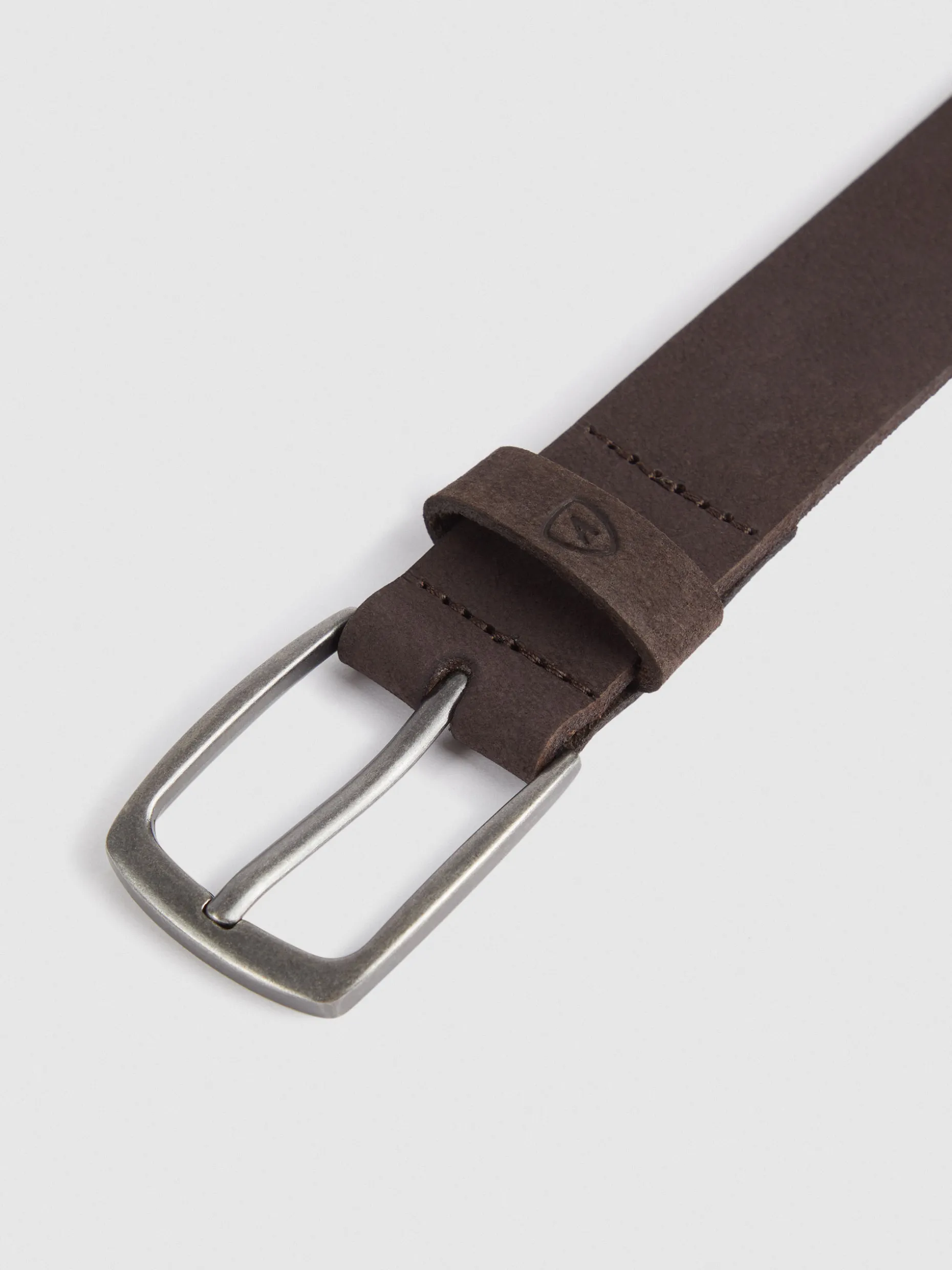 Cinturón con cierre central mediante hebilla metálica, pasador al tono y logo de la marca grabado al tono.