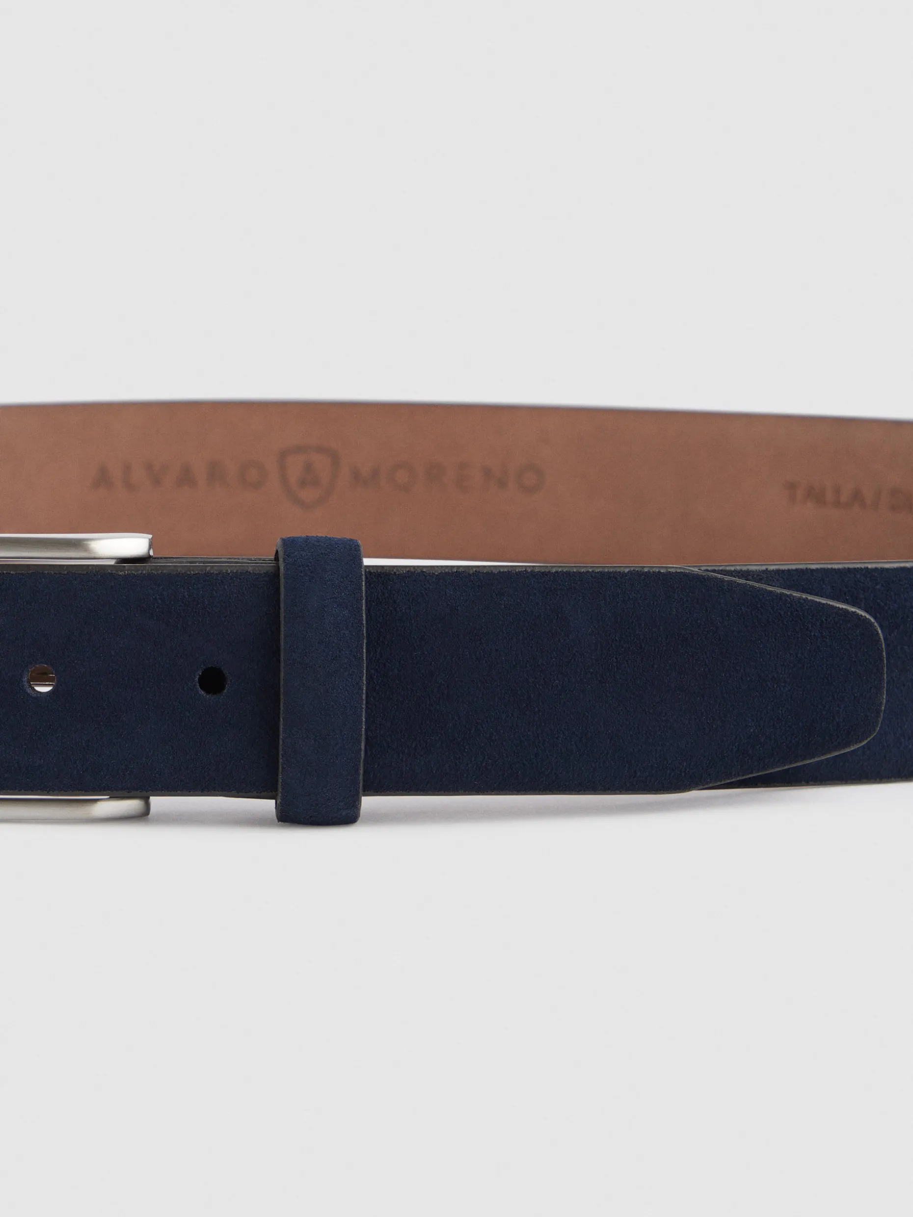 Cinturón de vestir confeccionado en cuero con cierre central mediante hebilla metálica y pasador al tono.