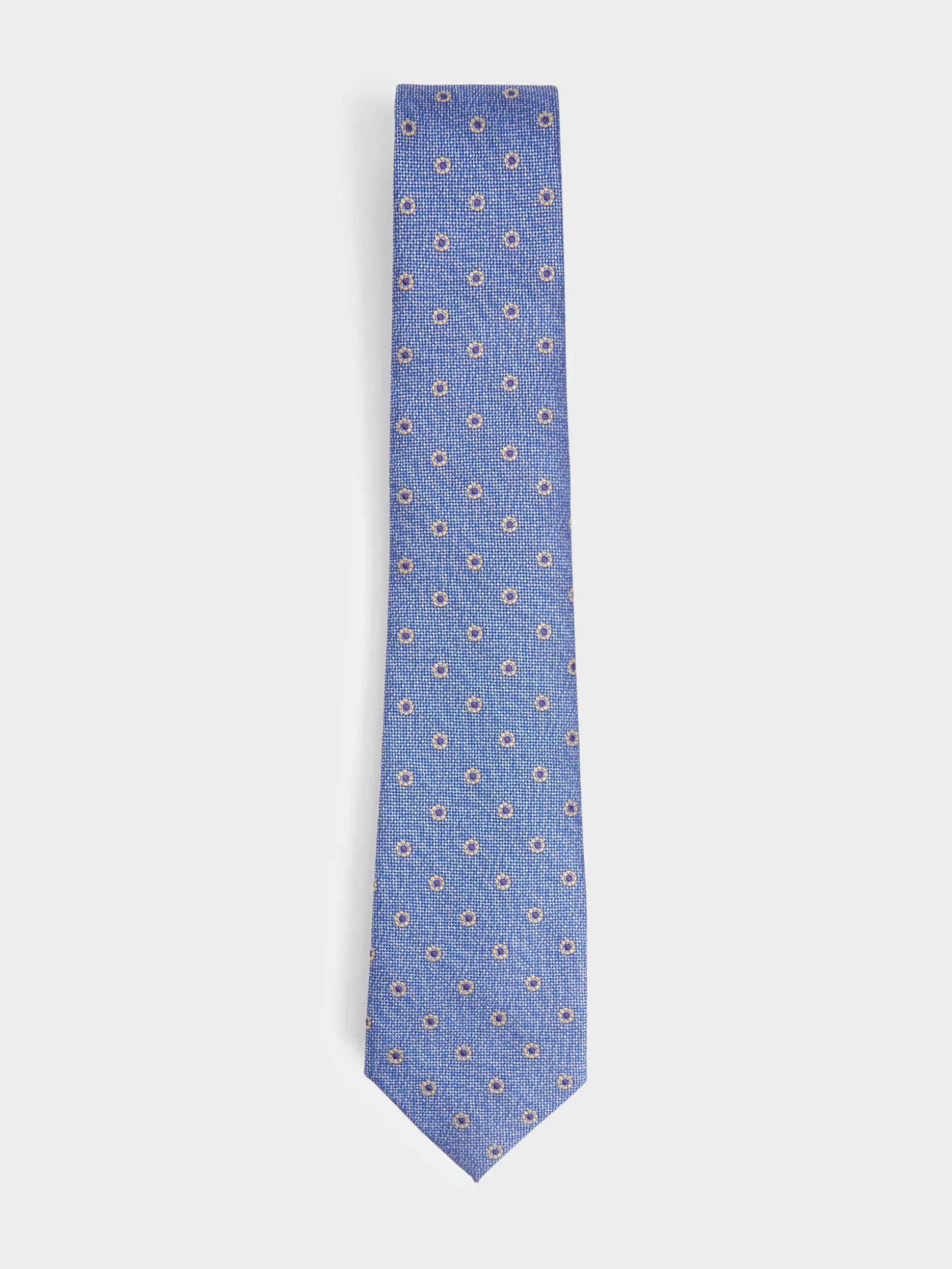 Corbata estilo jacquard con diseño estampado a contraste confeccionada en 100% poliéster. Cuenta con el logo de la marca grabado en el interior.