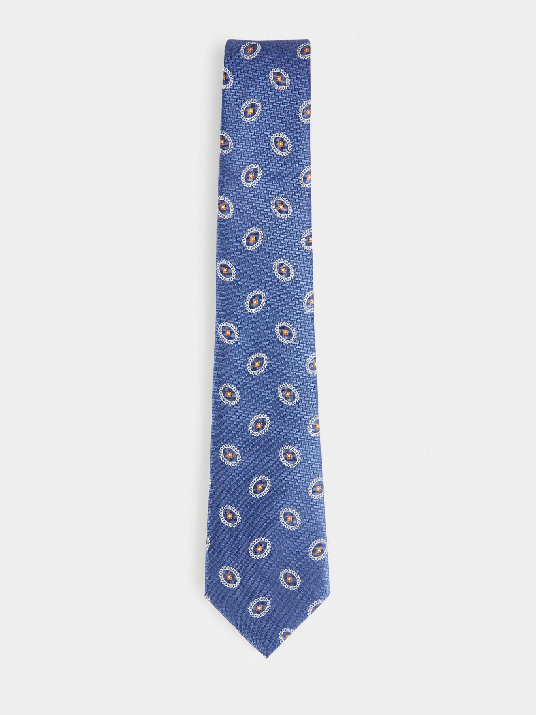 Corbata estilo jacquard con diseño estampado a contraste confeccionada en 100% poliéster. Cuenta con el logo de la marca grabado en el interior.