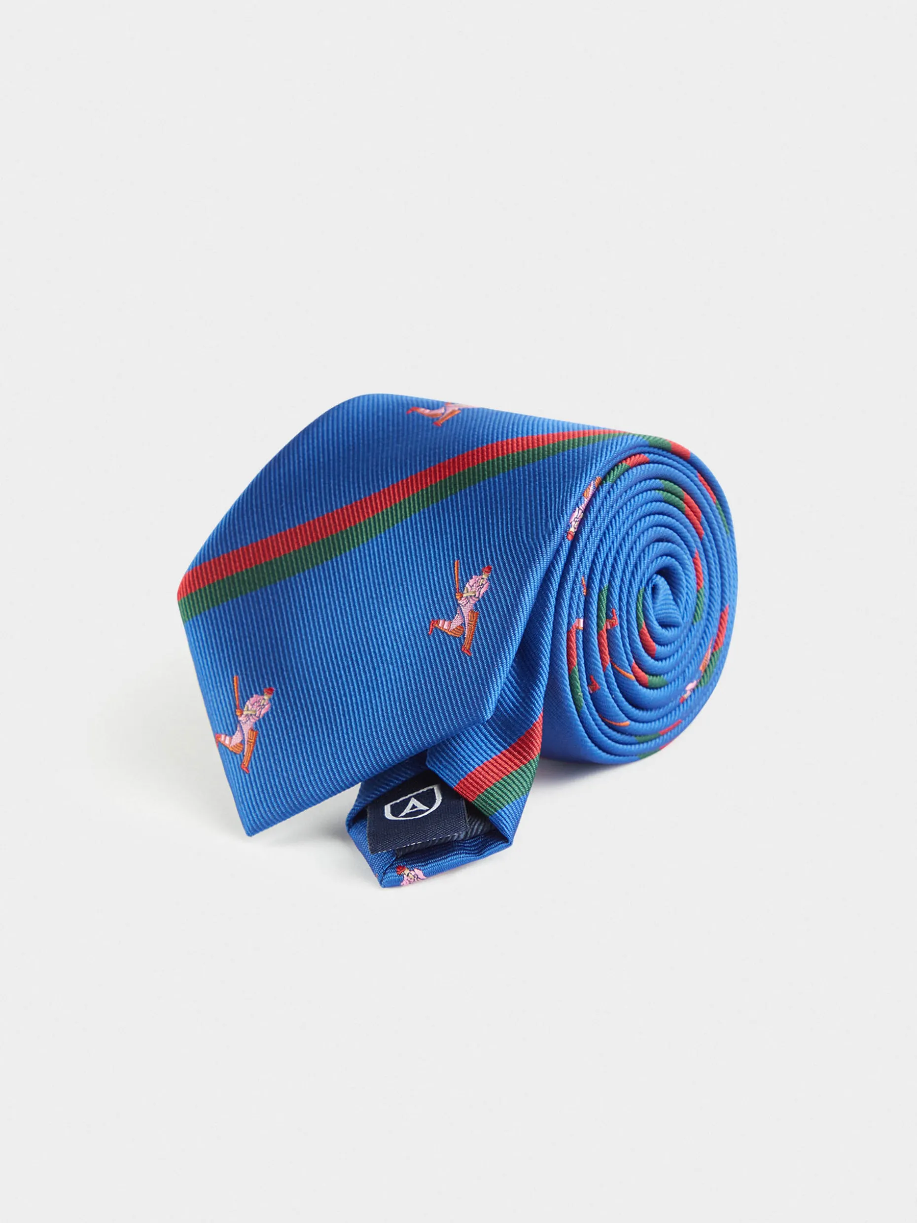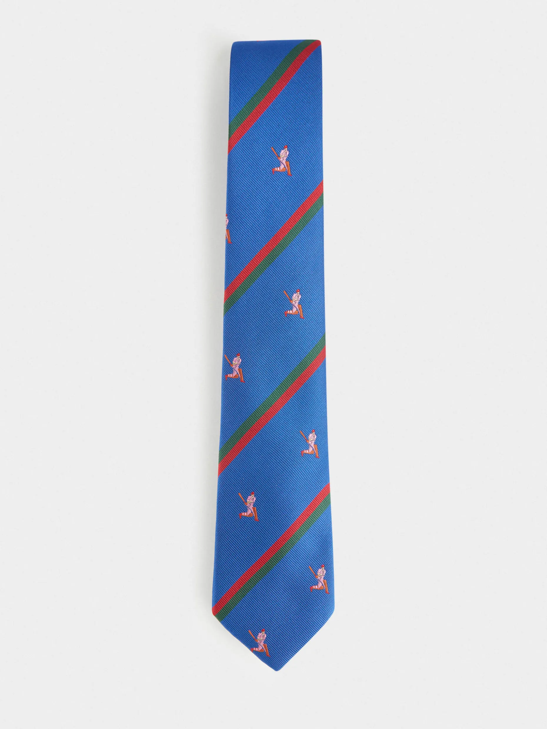 Corbata estilo jacquard con diseño estampado a contraste confeccionada en 100% poliéster. Cuenta con el logo de la marca grabado en el interior.