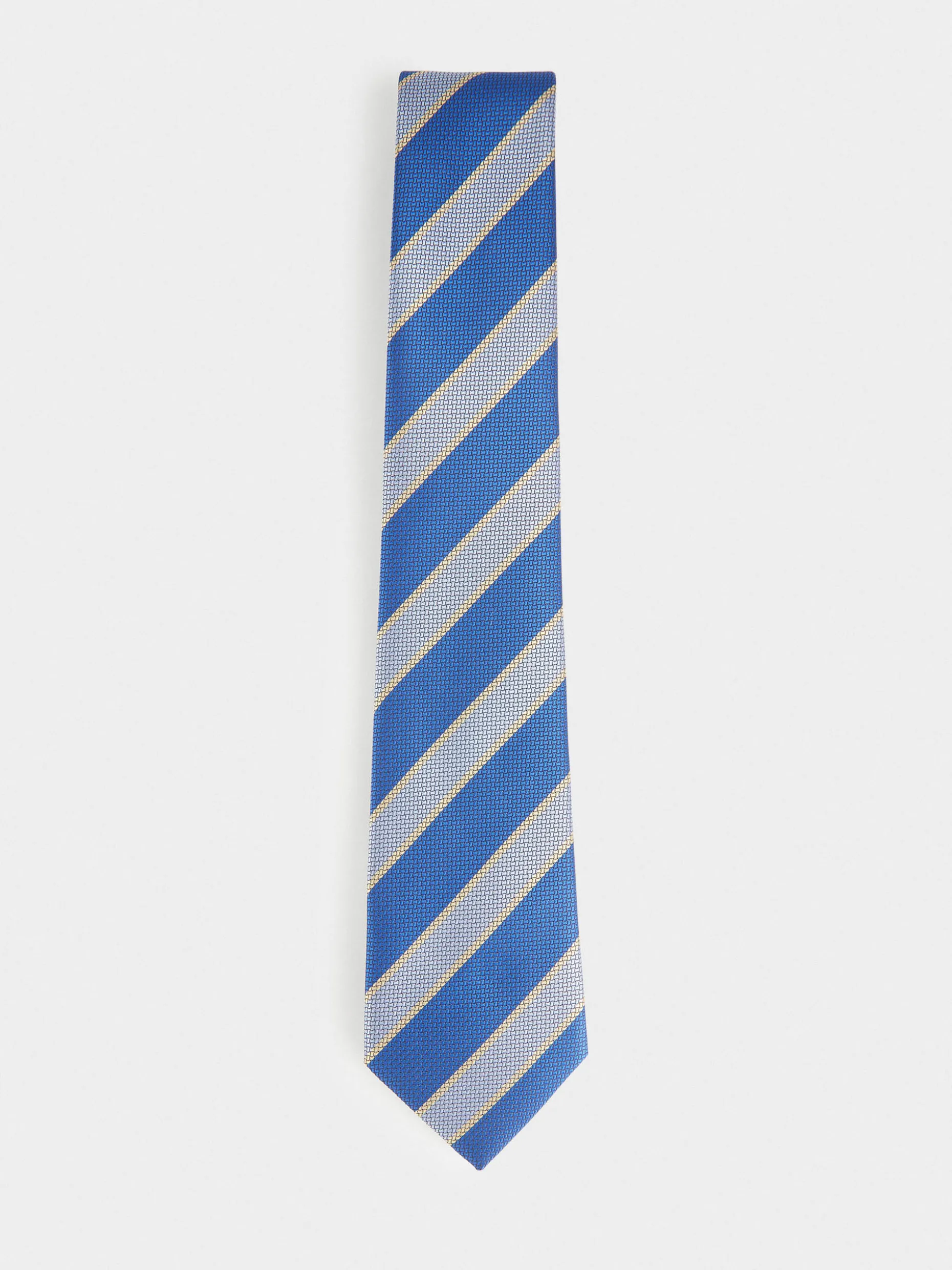 Corbata estilo jacquard con diseño estampado a contraste confeccionada en 100% poliéster. Cuenta con el logo de la marca grabado en el interior.
