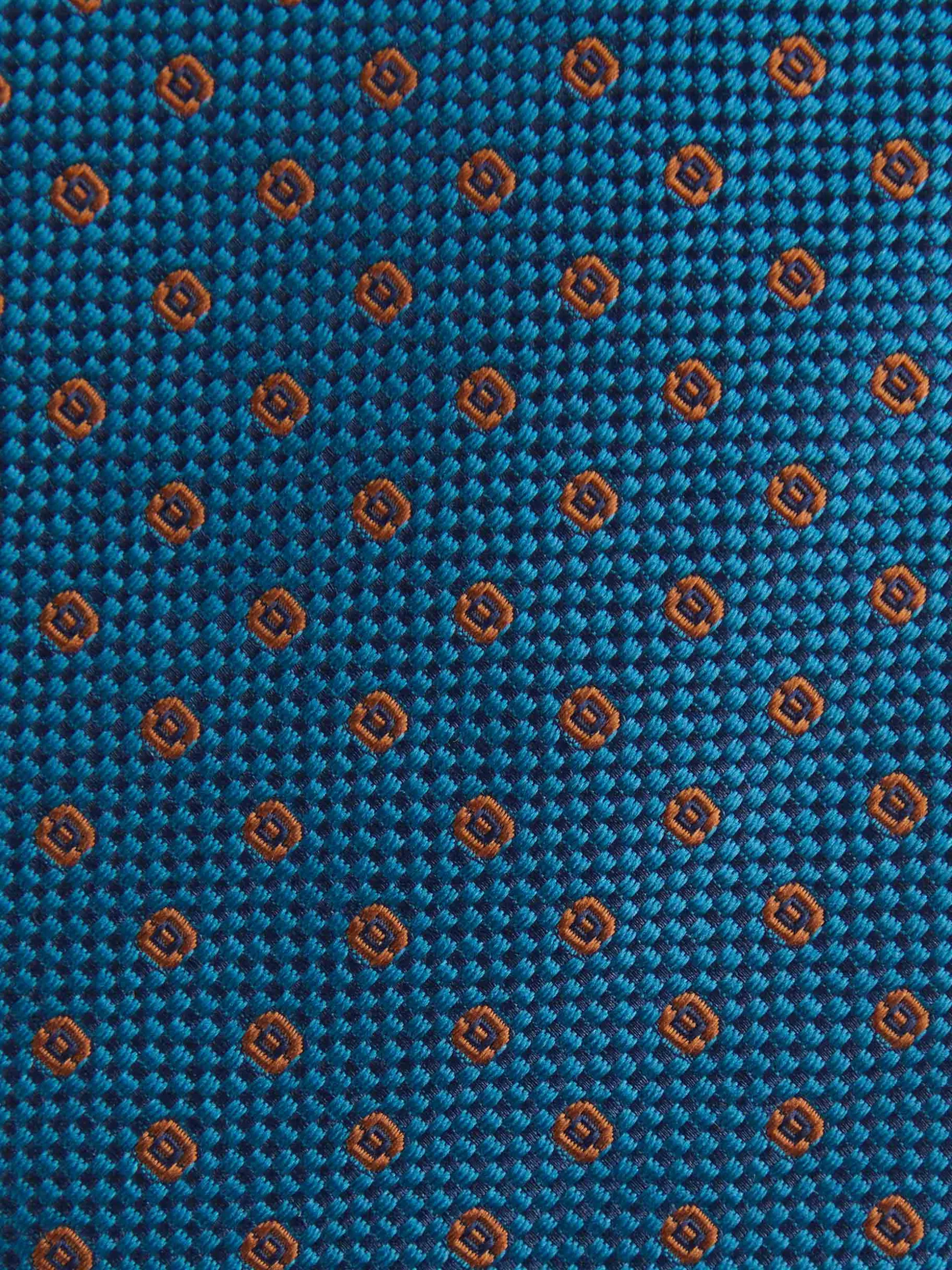 Corbata estilo jacquard con diseño estampado a contraste confeccionada en 100% poliéster. Cuenta con el logo de la marca grabado en el interior.
