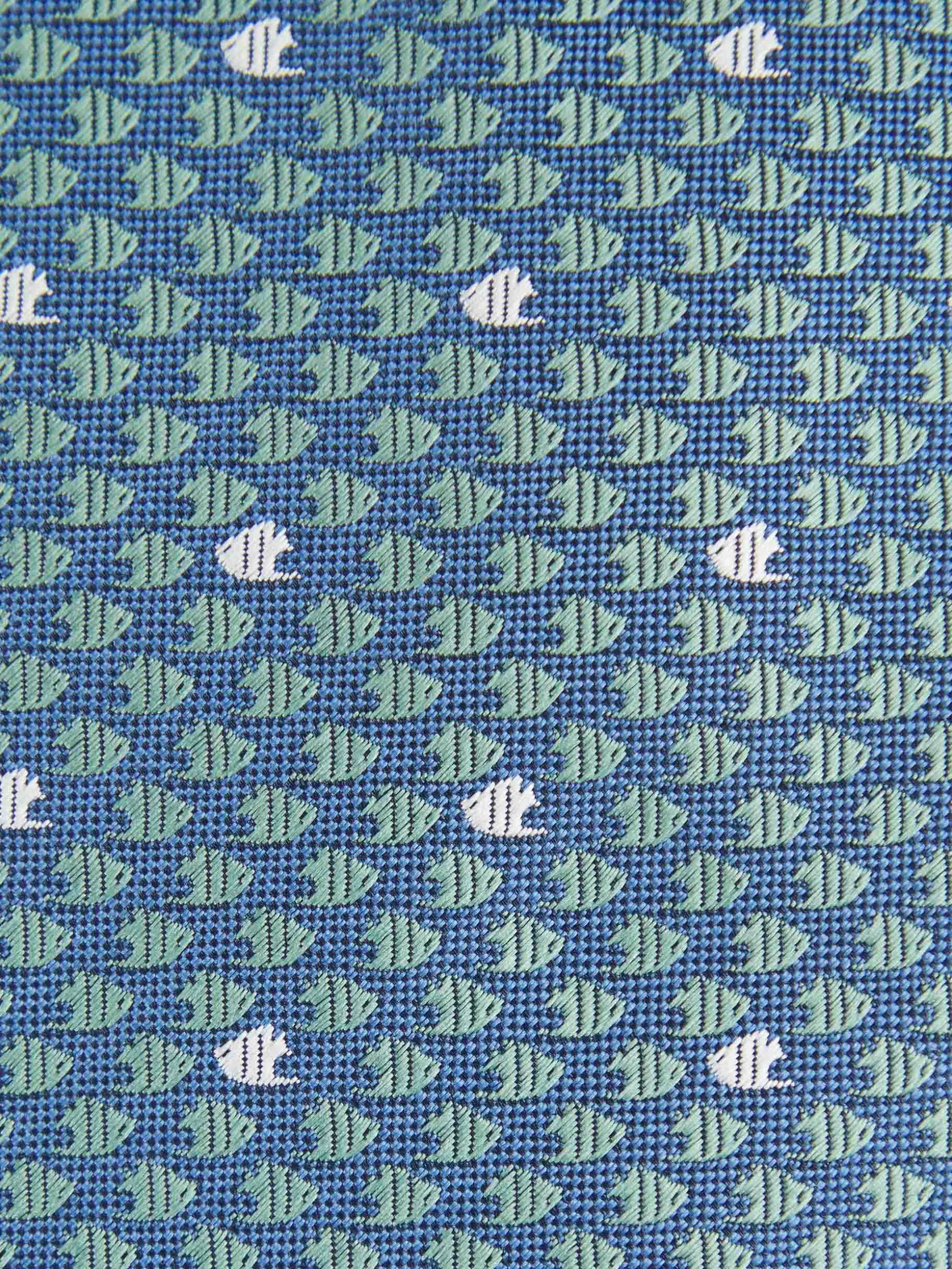 Corbata estilo jacquard con diseño estampado a contraste confeccionada en 100% poliéster. Cuenta con el logo de la marca grabado en el interior.