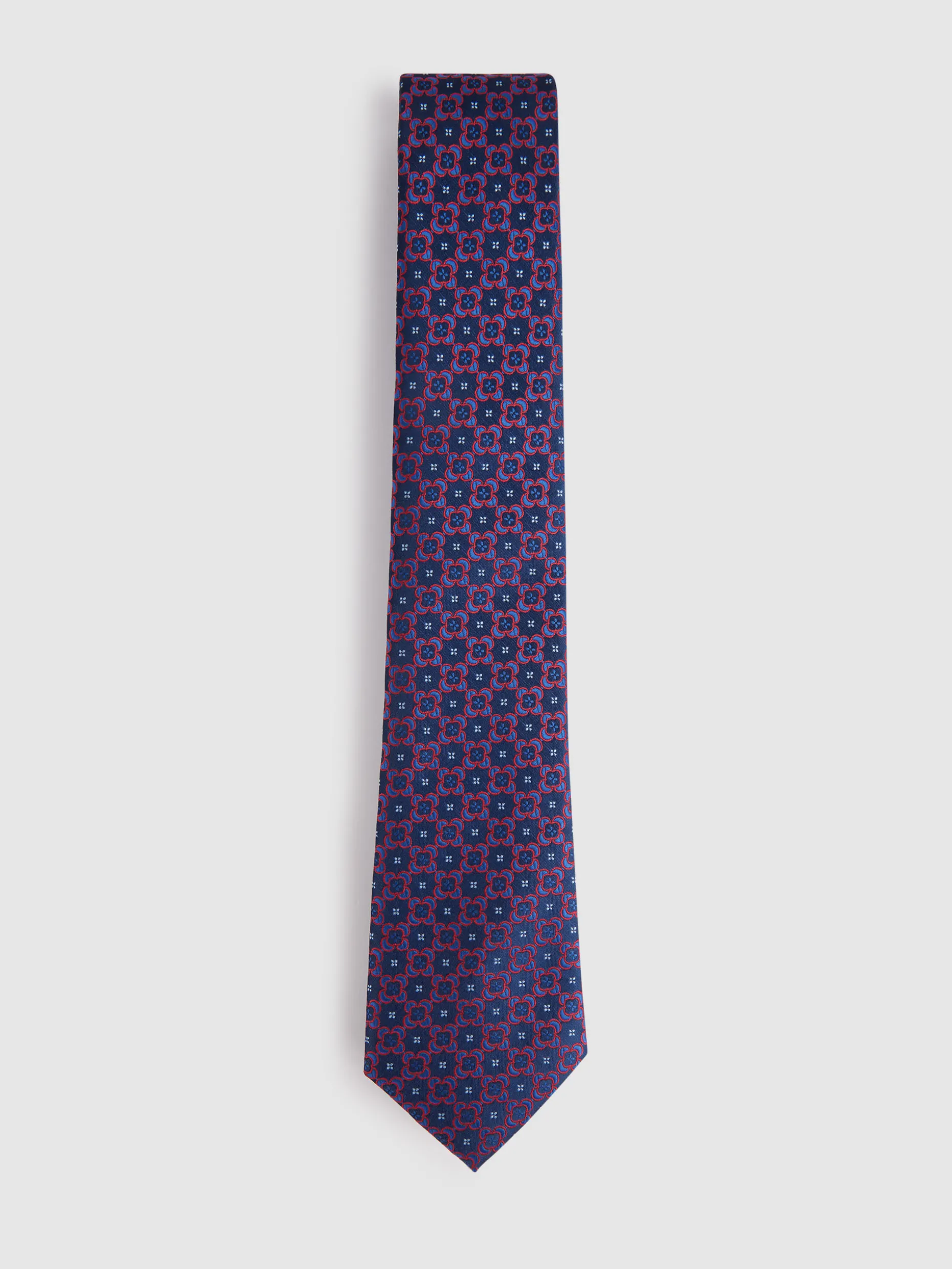 Corbata estilo jacquard con diseño estampado a contraste confeccionada en 100% poliéster. Cuenta con el logo de la marca grabado en el interior.