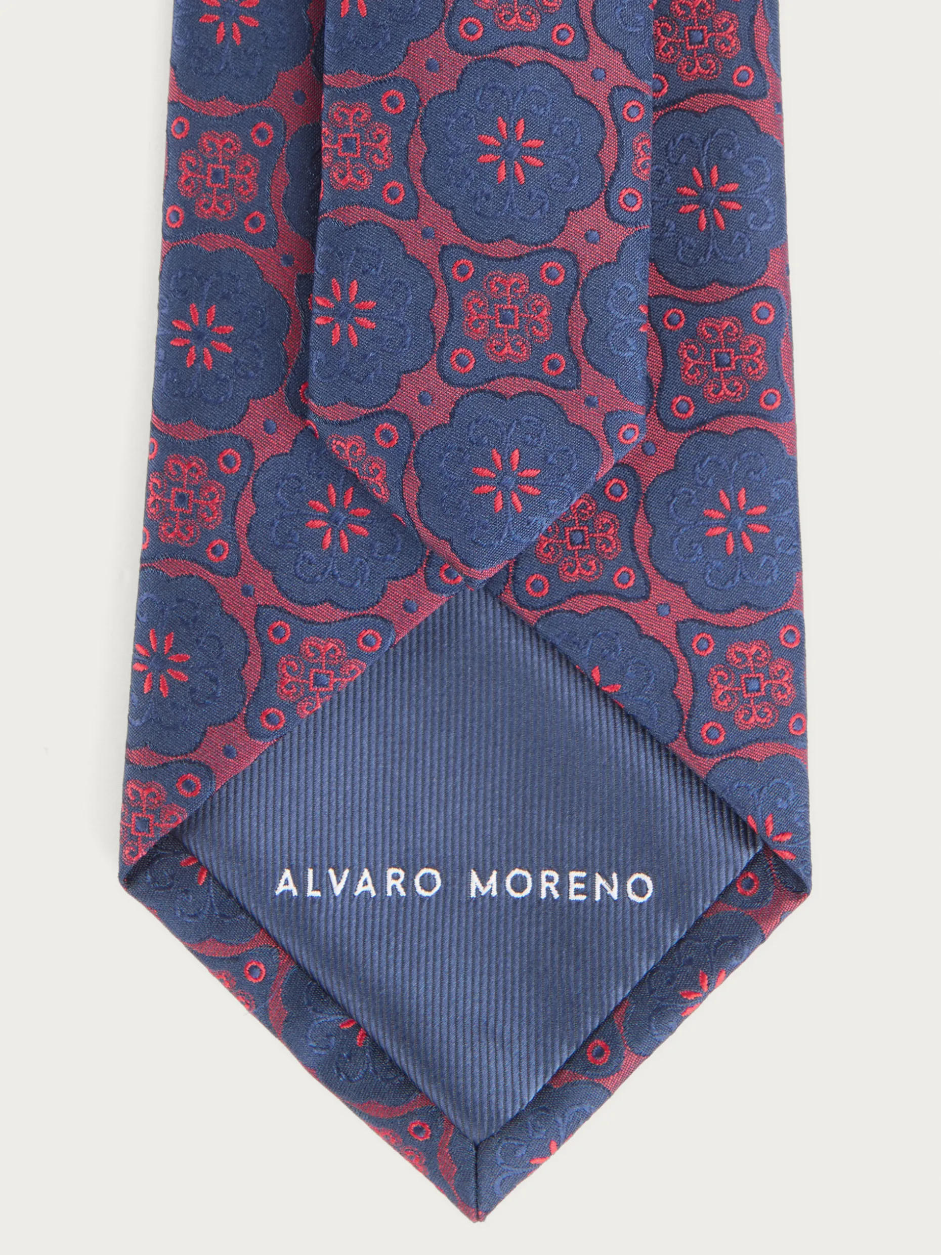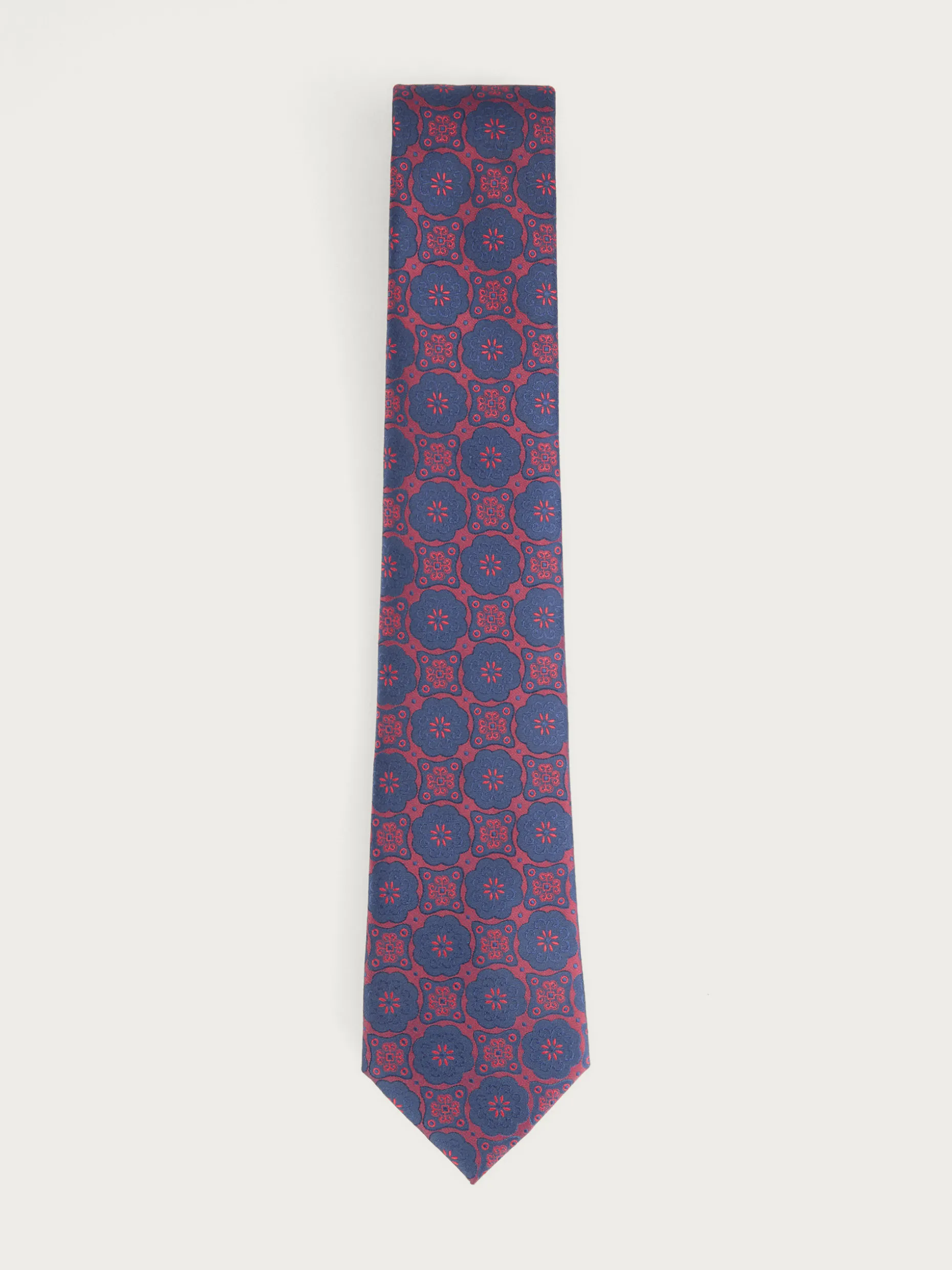 Corbata estilo jacquard con diseño estampado a contraste confeccionada en 100% poliéster. Cuenta con el logo de la marca grabado en el interior.