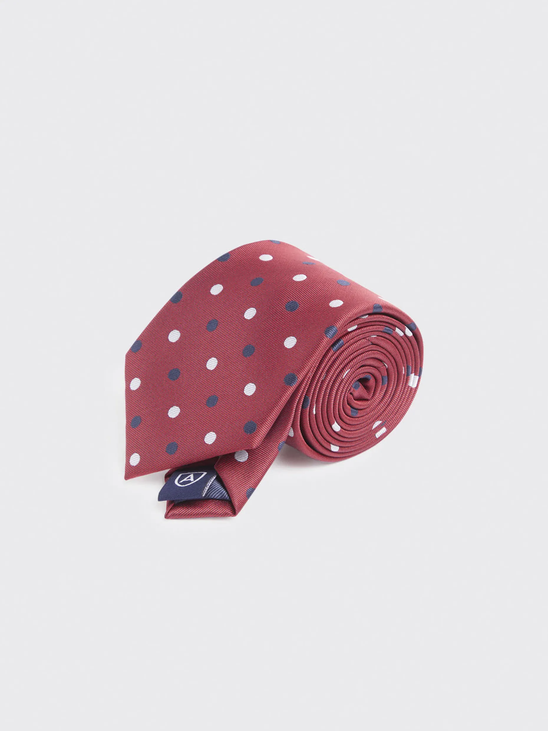 Corbata estilo jacquard con diseño estampado a contraste confeccionada en 100% poliéster. Cuenta con el logo de la marca grabado en el interior.