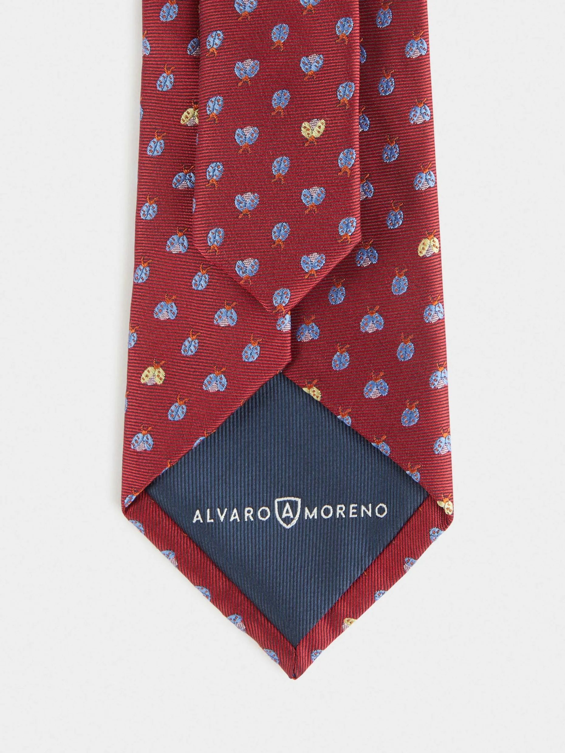 Corbata estilo jacquard con diseño estampado a contraste confeccionada en 100% poliéster. Cuenta con el logo de la marca grabado en el interior.