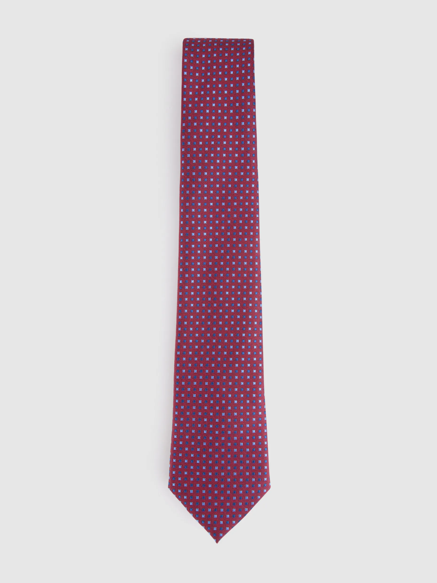 Corbata estilo jacquard con diseño estampado a contraste confeccionada en 100% poliéster. Cuenta con el logo de la marca grabado en el interior.