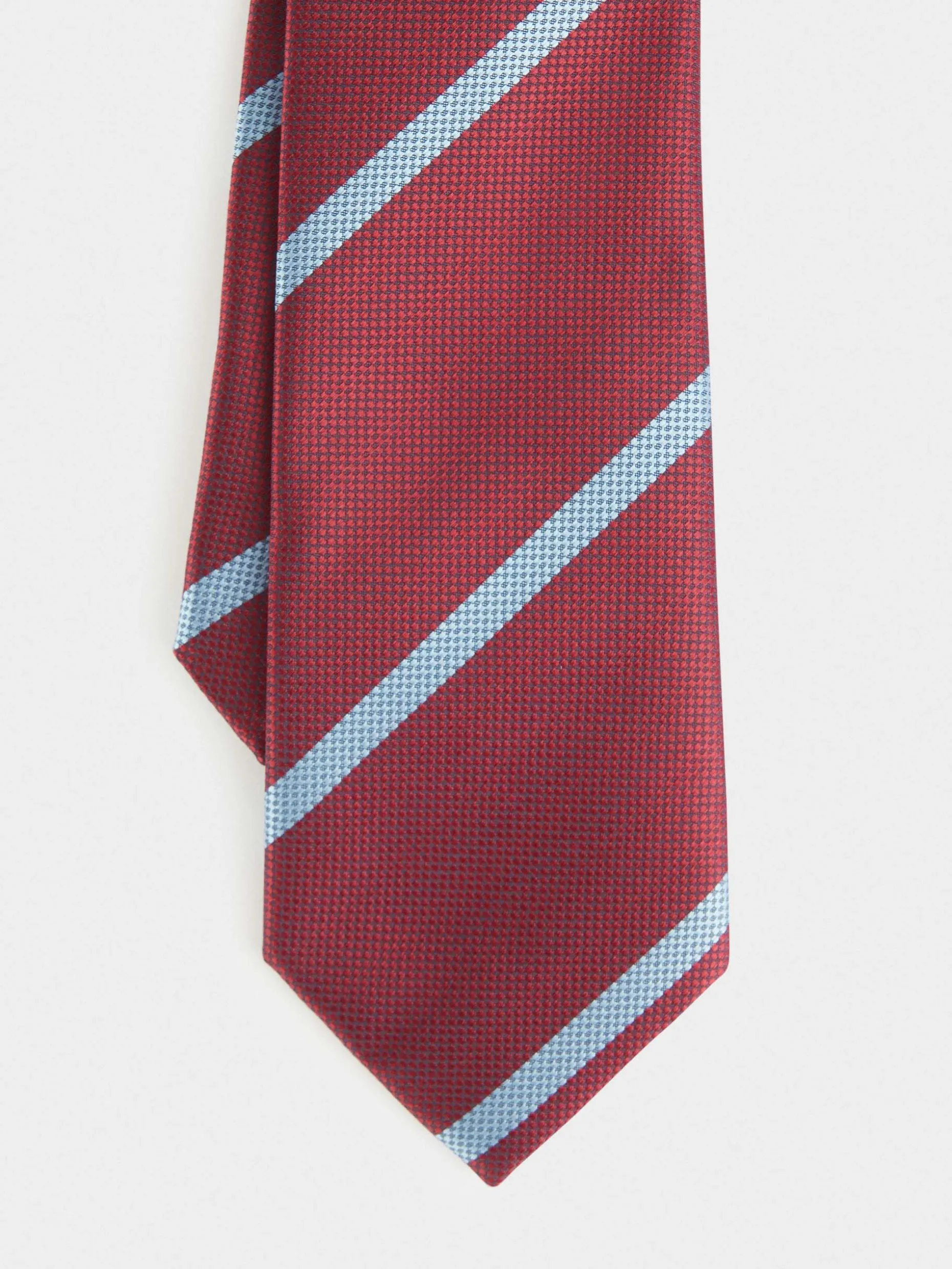Corbata estilo jacquard con diseño estampado a contraste confeccionada en 100% poliéster. Cuenta con el logo de la marca grabado en el interior.