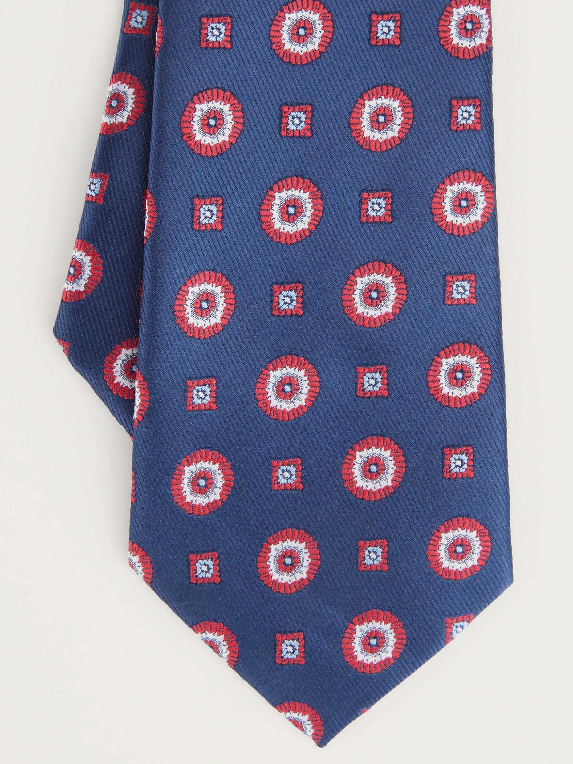 Corbata estilo jacquard con diseño estampado a contraste confeccionada en 100% poliéster. Cuenta con el logo de la marca grabado en el interior.