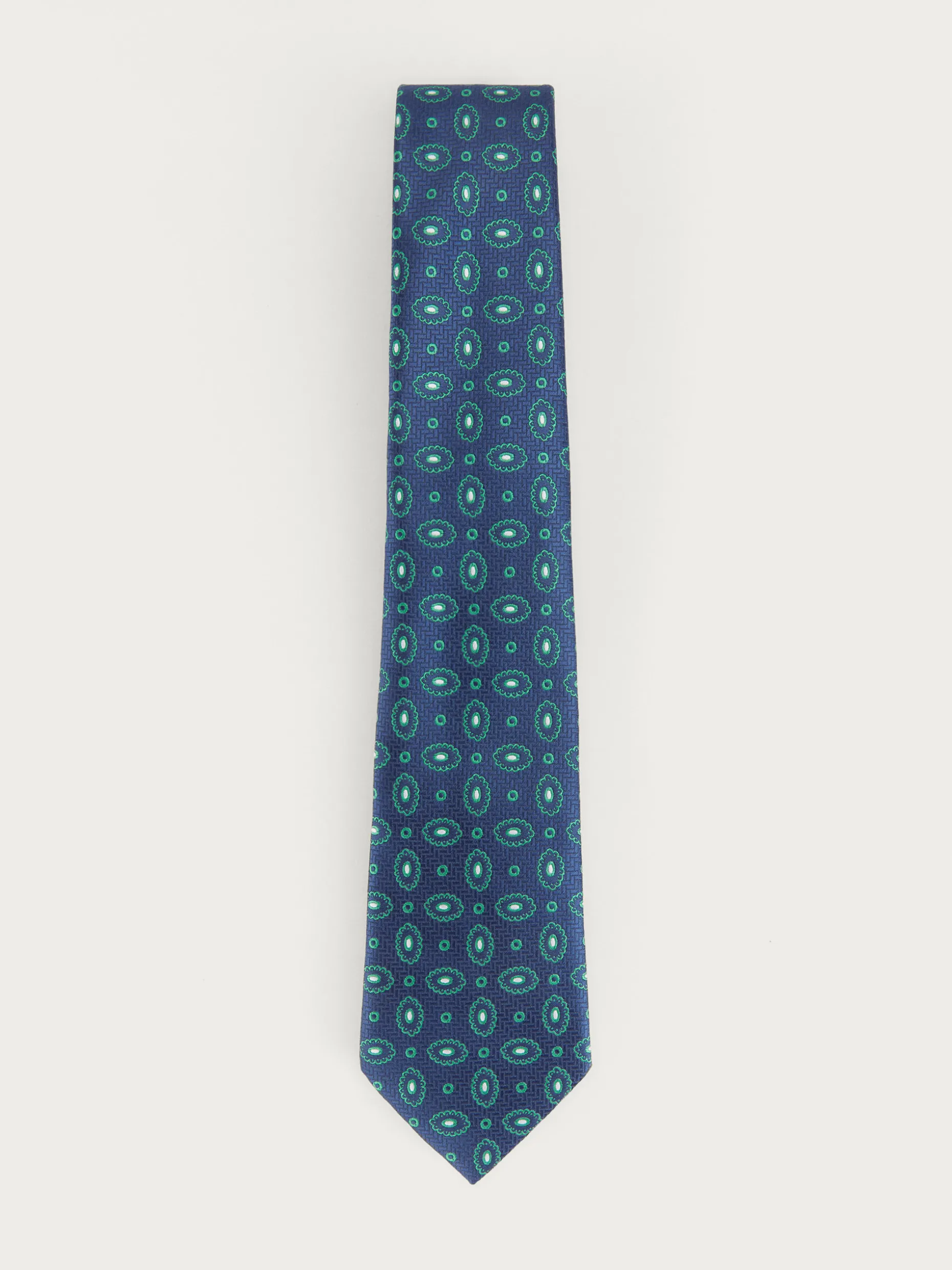 Corbata estilo jacquard con diseño estampado a contraste confeccionada en 100% poliéster. Cuenta con el logo de la marca grabado en el interior.