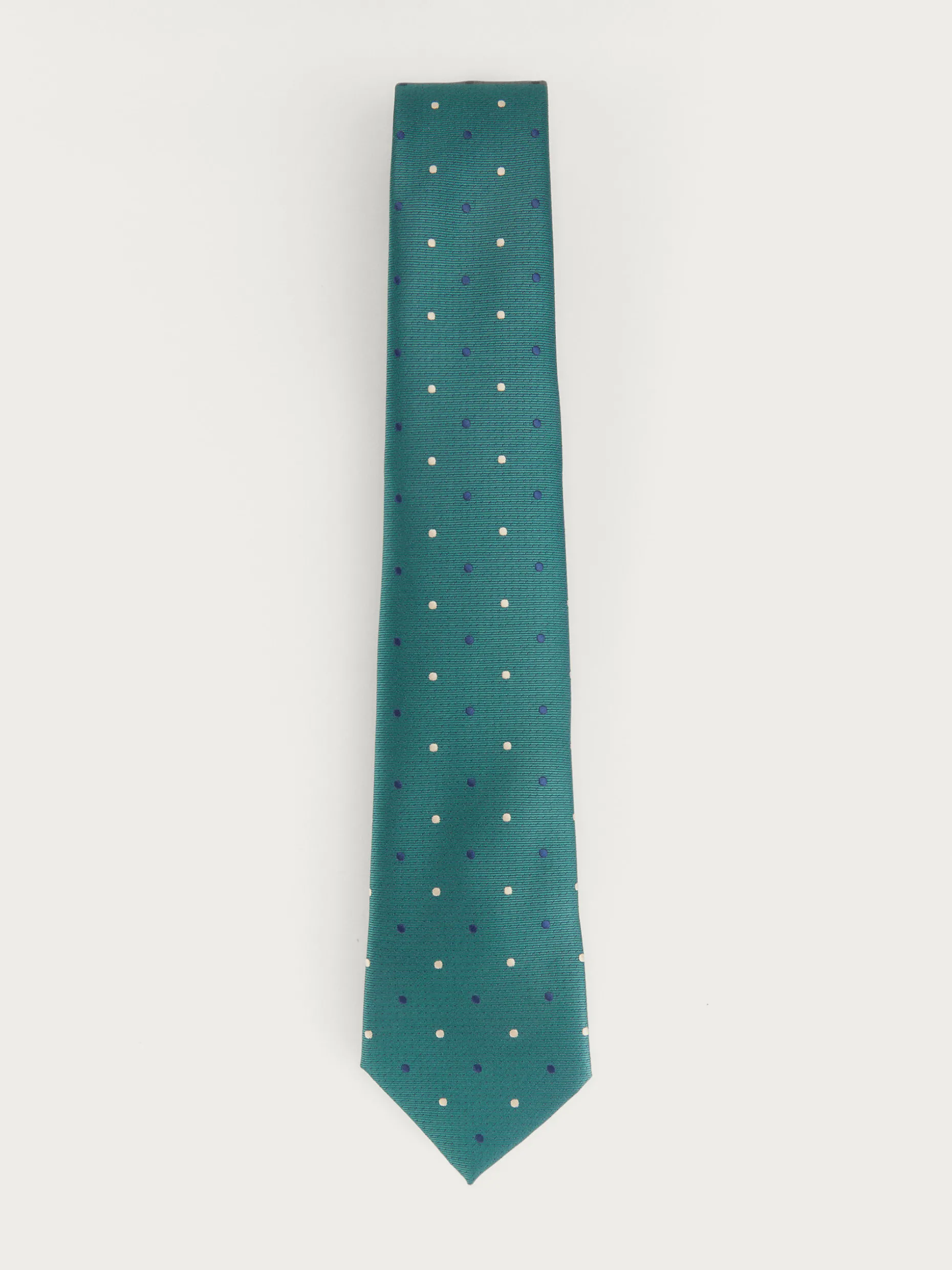 Corbata estilo jacquard con diseño estampado a contraste confeccionada en 100% poliéster. Cuenta con el logo de la marca grabado en el interior.