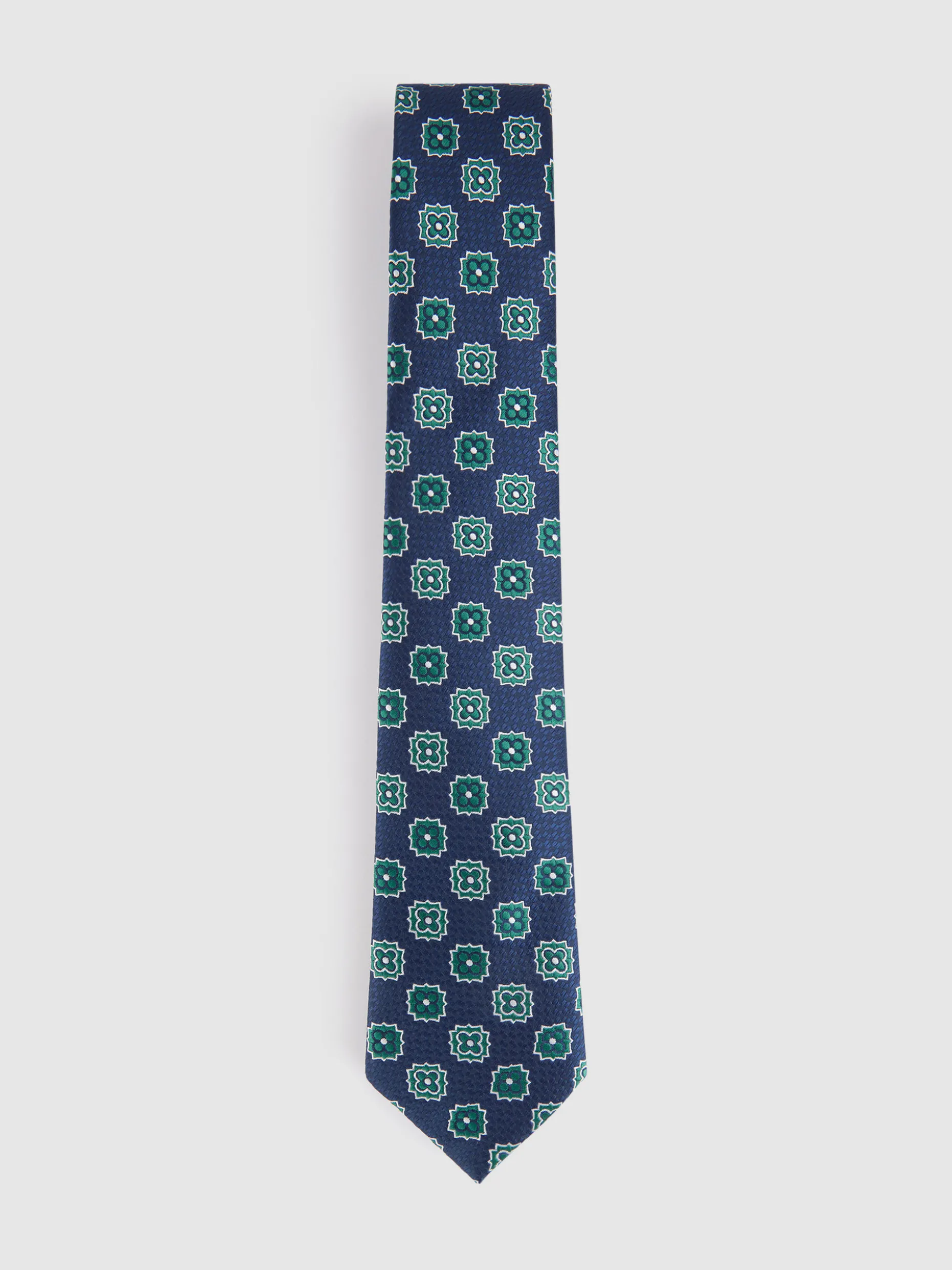Corbata estilo jacquard con diseño estampado a contraste confeccionada en 100% poliéster. Cuenta con el logo de la marca grabado en el interior.
