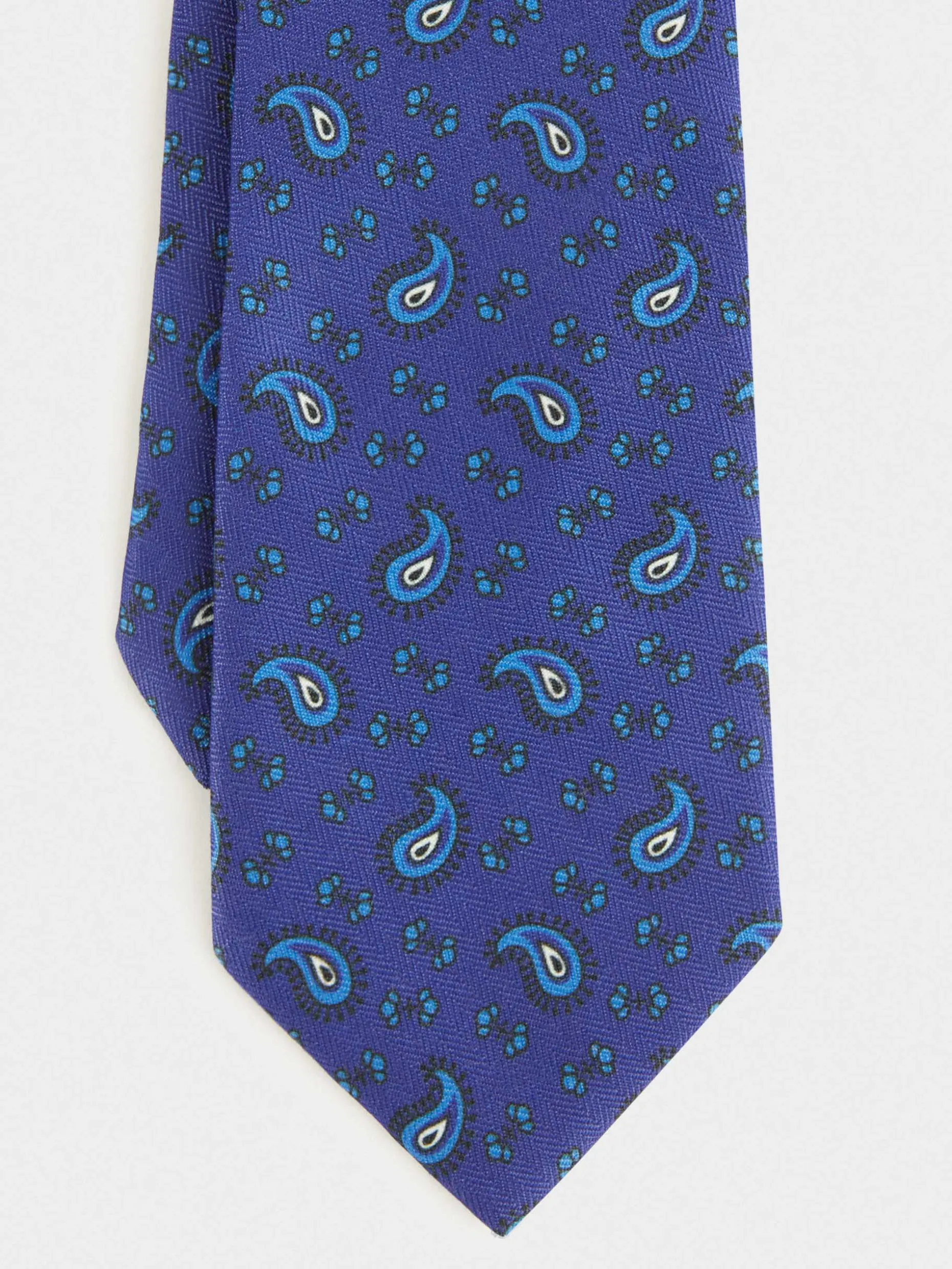 Corbata con diseño estampado personalizado confeccionada en 100% poliéster. Cuenta con el logo de la marca grabado en el interior.