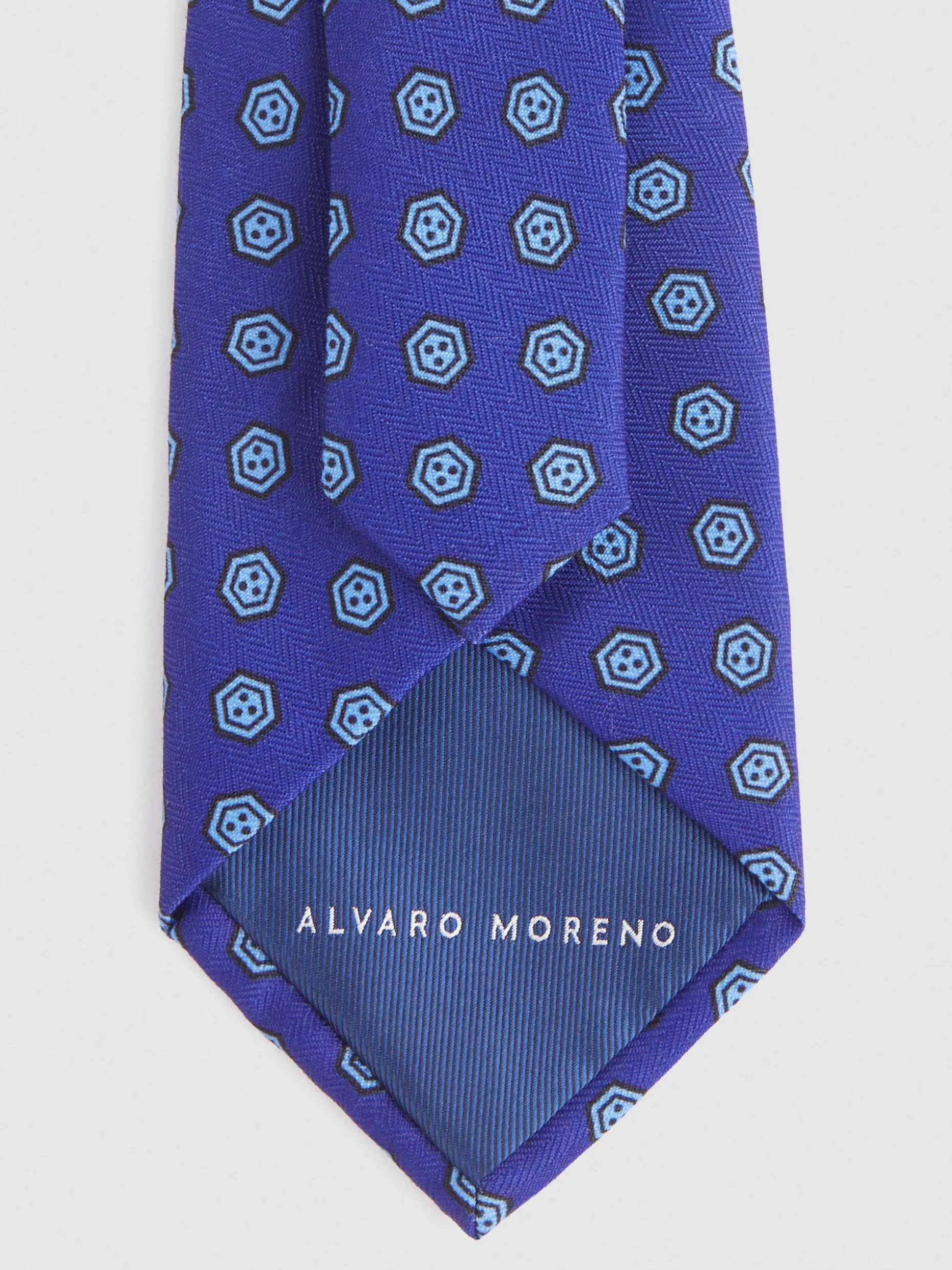 Corbata con diseño estampado personalizado confeccionada en 100% poliéster. Cuenta con el logo de la marca grabado en el interior.