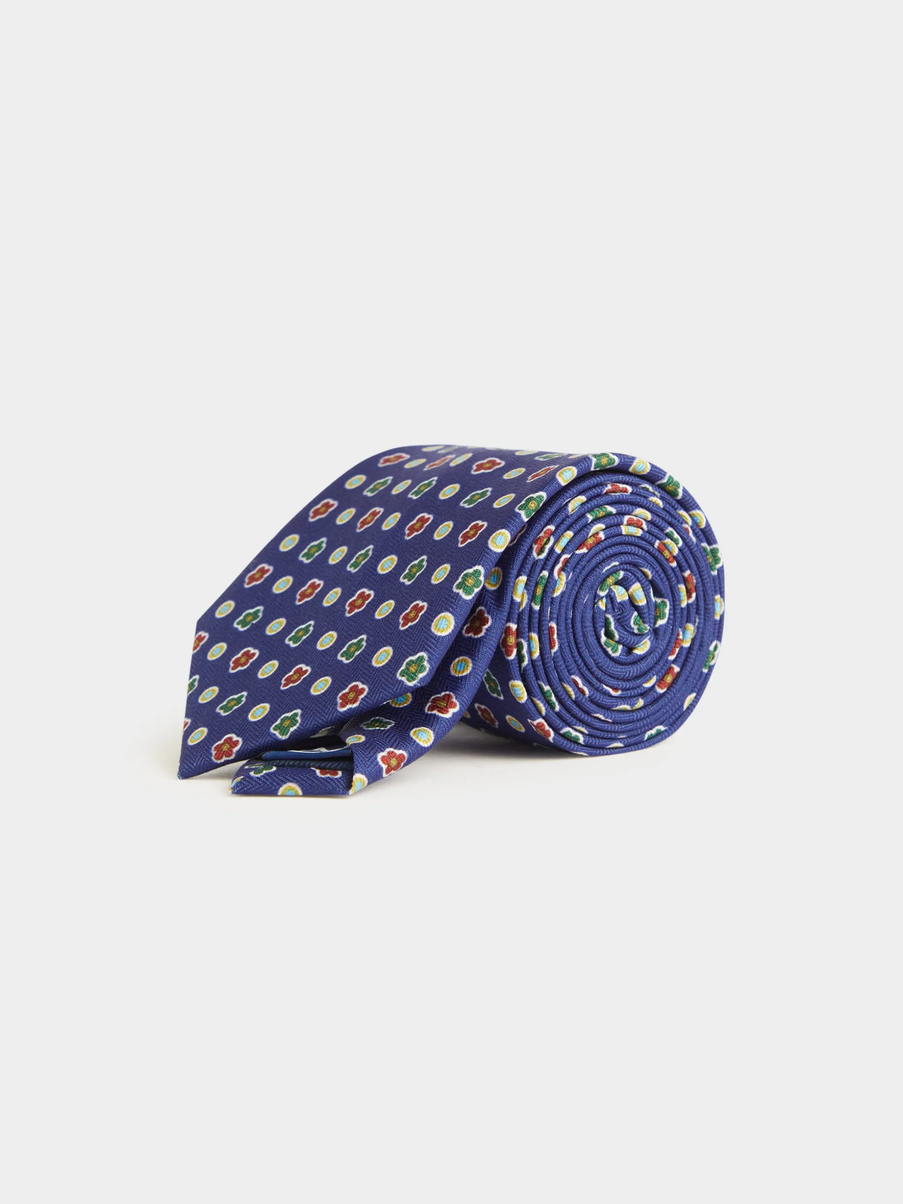 Corbata con diseño estampado personalizado confeccionada en 100% poliéster. Cuenta con el logo de la marca grabado en el interior.